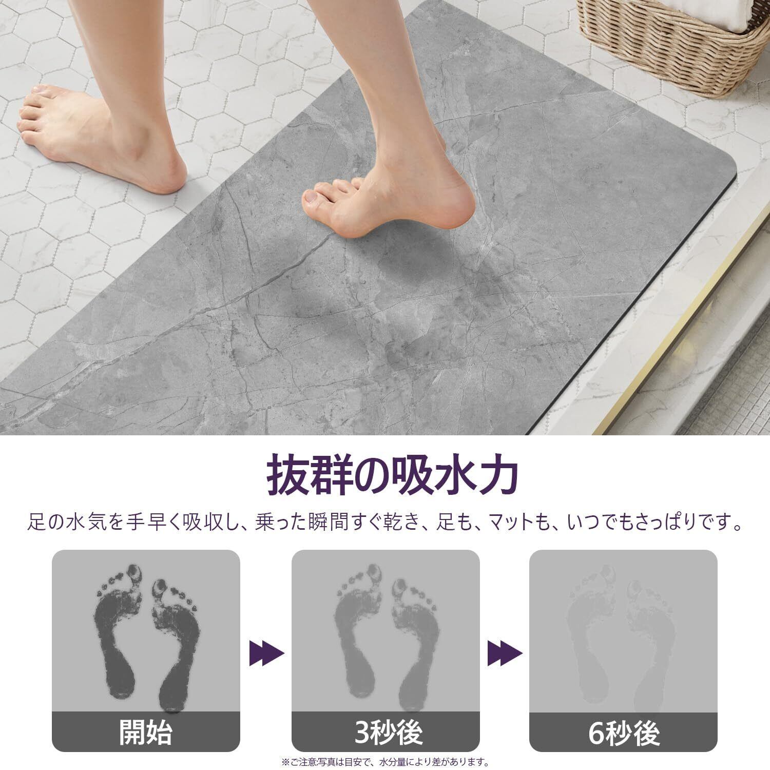 DEXI バスマット 速乾 お風呂マット 滑り止め 足拭き 高吸水力 ソフト 洗える 割れない 通気 安心 多層構造 収納便利 プレゼント 浴室 洗面所 バスルーム 大理石テクスチャー (60cmx40cm, 大理石グレー)