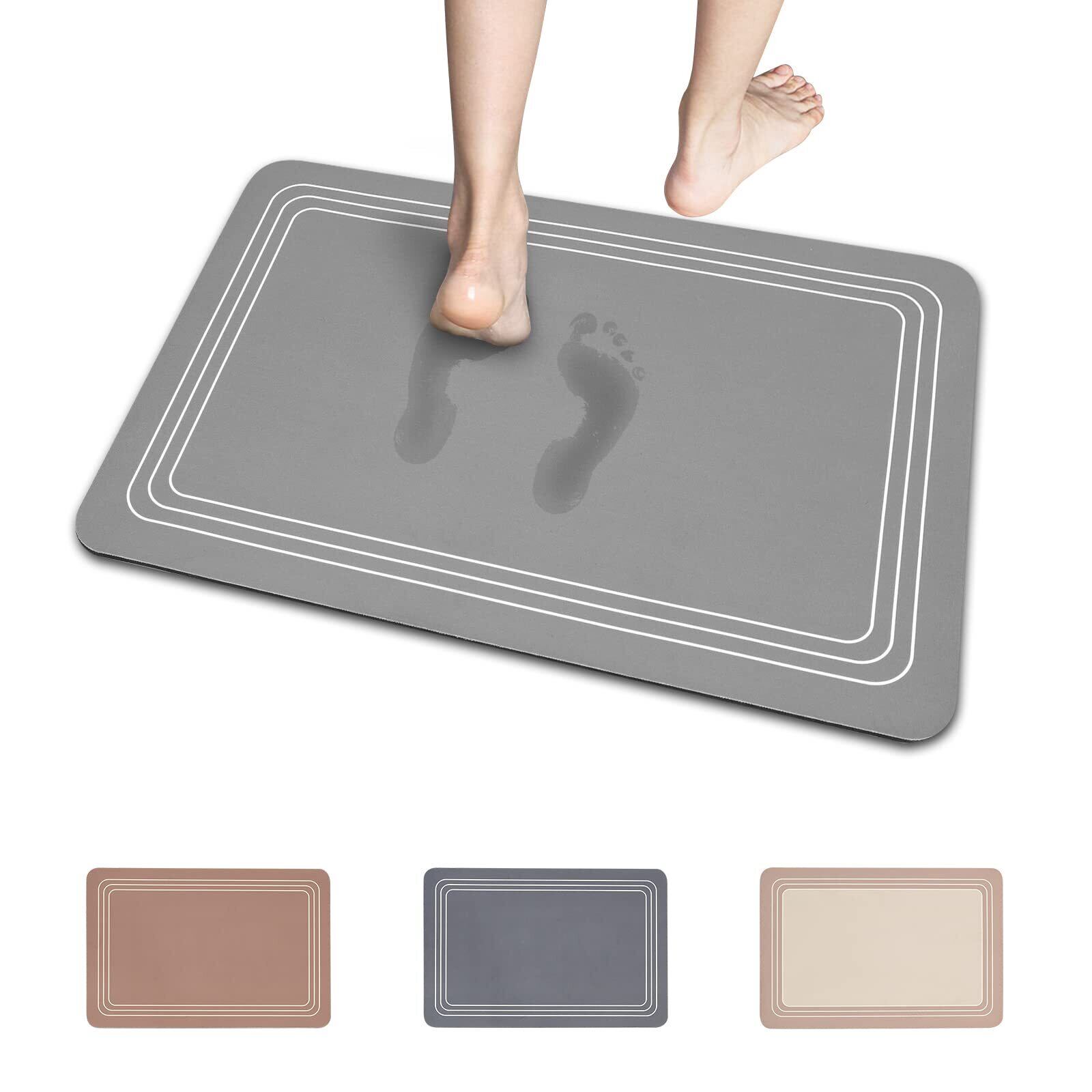 UOPUDSIRバスマット 珪藻土 バスマットソフト速乾 お風呂珪藻土マット 大判 足ふき ゲレー 速乾 吸水 玄関 滑り止め 抗菌 薄い 柔らかい 水切り 浴室 洗面所(60*40cm) (Gray)