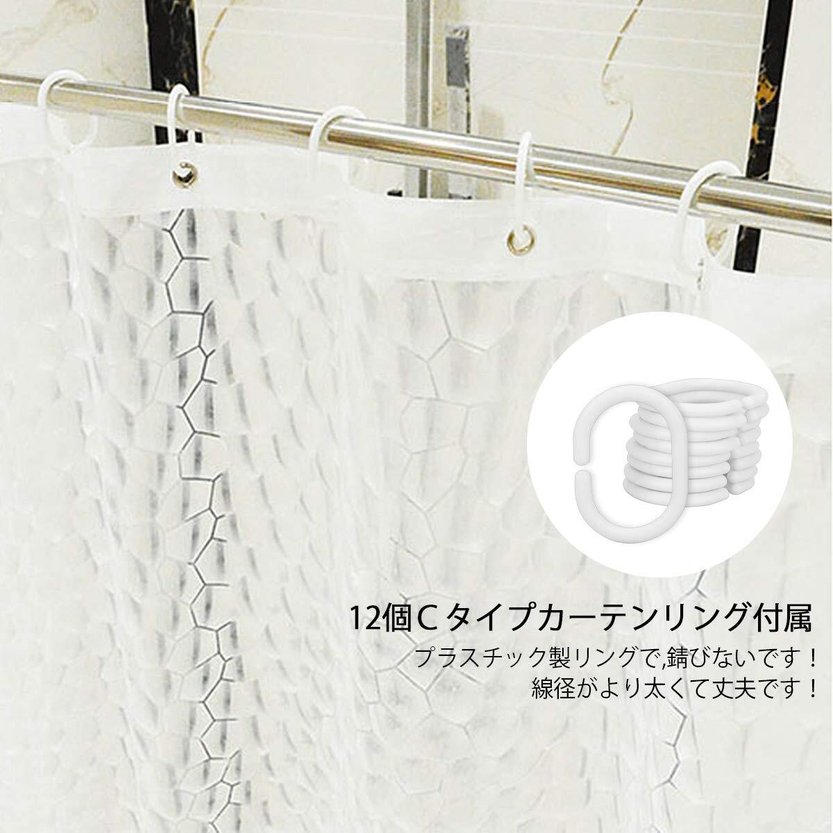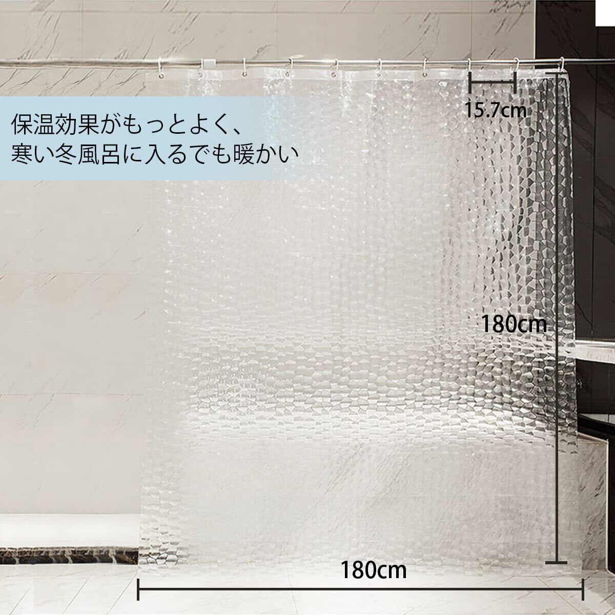 KaiYiシャワーカーテン 180x180cm半透明 バスカーテン 北欧 ユニットバスカーテン 防カビ防水 間仕切り リング付属