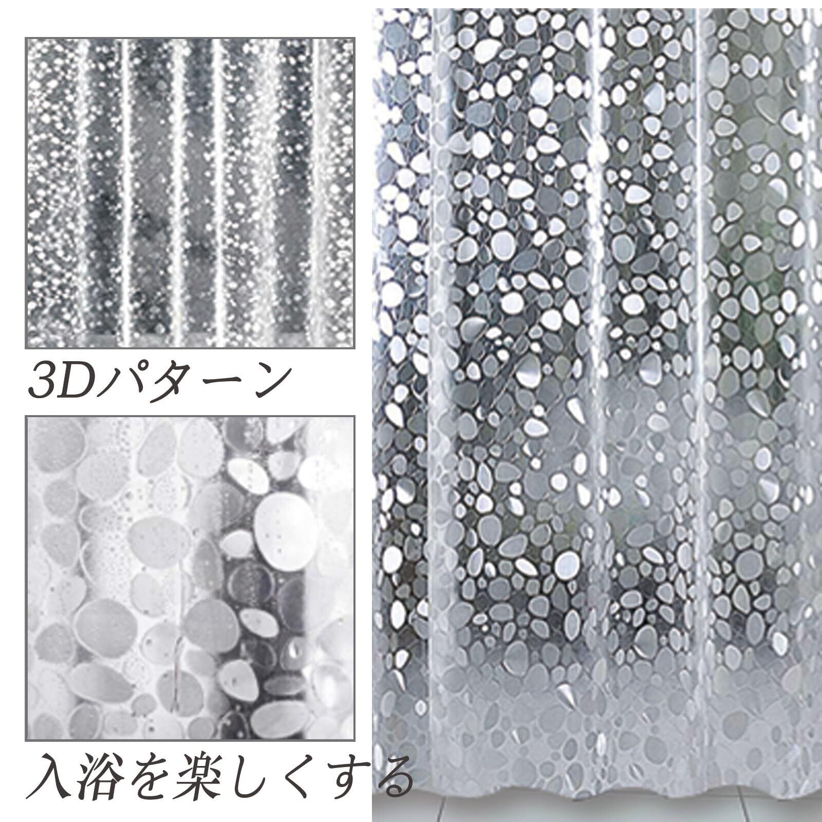 PEVA厚手3Dシャワーカーテン 浴室 バスルーム シャワーカーテン シャワーカーテン セット内容:シャワーカーテンx1+プラスチックカーテンリングx6 素材:PEVA サイズ:カーテン-W80 * H180 パターン: 3D 小石 寒い冬にお風呂に入りましょう、暖かくてプライバシーを守ります。半透明のシャワーカーテンは合わせやすいです。