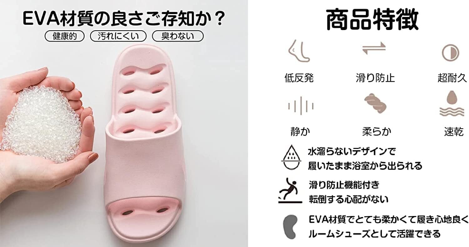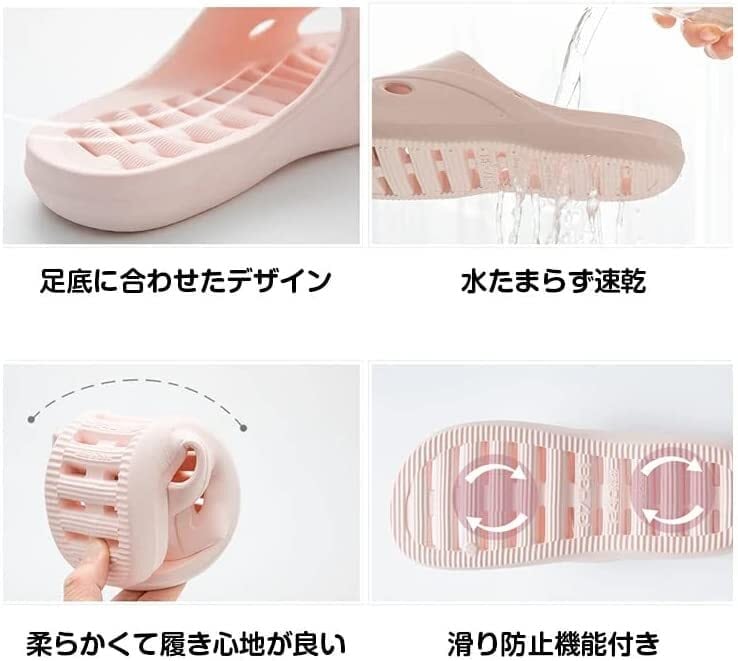 滑り防止機能付き、転倒する心配がない!水溜らないデザインで履いたまま浴室から出られる!