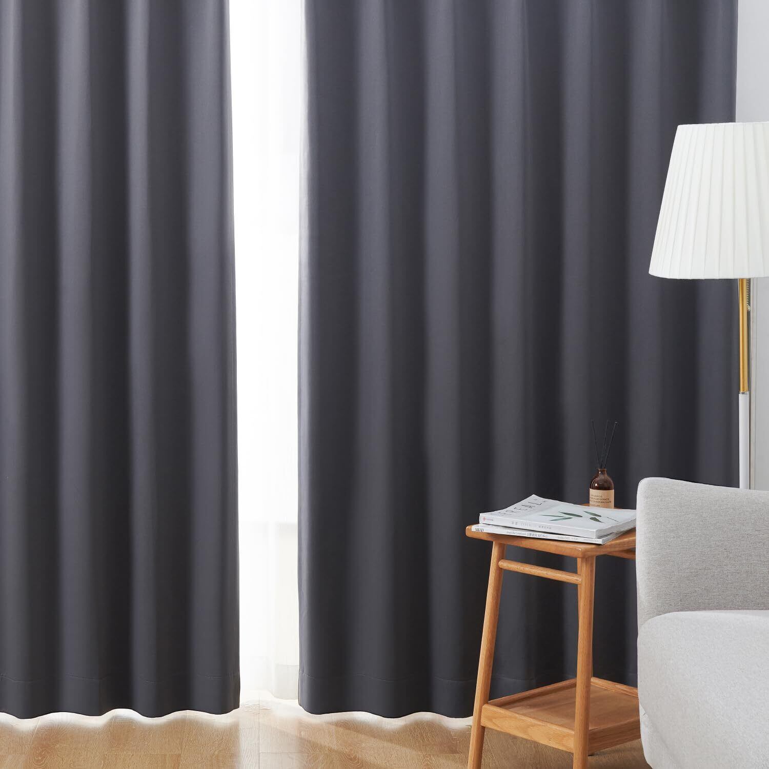 【特価セール】クモリ(Kumori) カーテン 遮光度99.99% 1級 遮光カーテン しっかり厚手 断熱 遮熱 防寒 防音 節電効果 省エネ 形状記憶加工 洗濯可能 無地 寝室 リビング アジャスター フック付き(ダークグレー・幅100cm×丈178cm・2枚組)