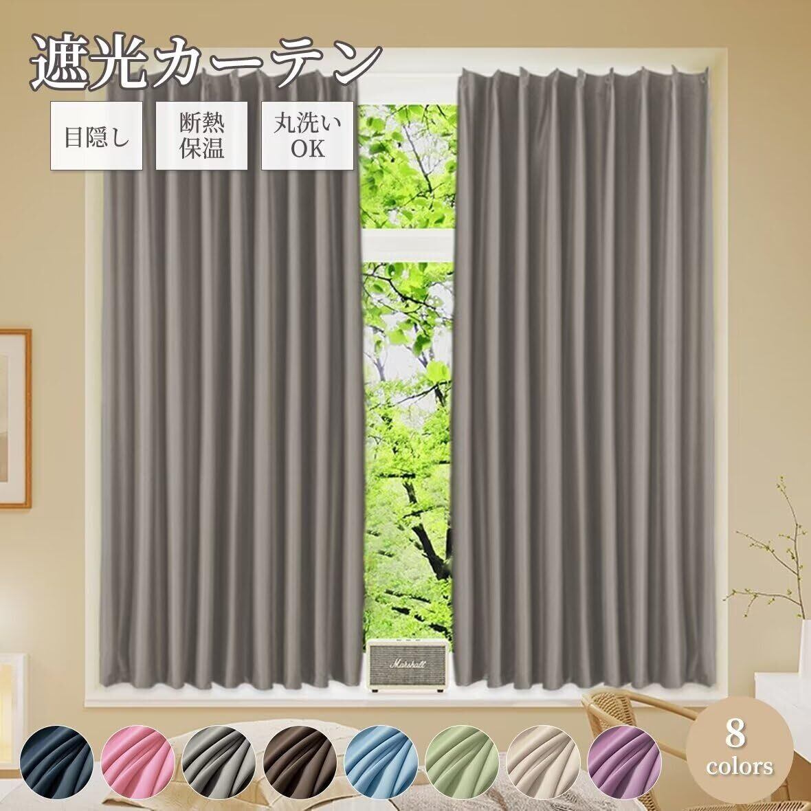 【在庫処分】KAMIMORI 遮光カーテン 120cm丈 幅60cm 小窓 ドレープカーテン おしゃれ 無地 UVカット 断熱 保温 防寒 節電対策 昼夜目隠し 1枚入り アジャスターフック付き 北欧 シンプル グレー
