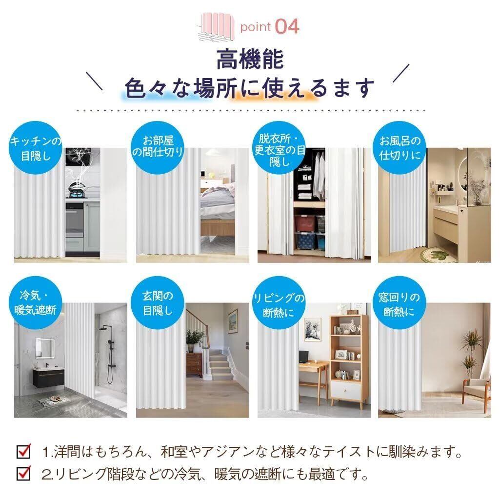 唐土工房 間仕切りカーテン 遮光 断熱 遮光カーテン 丈180cm 幅120cm のれん おしゃれ 暖簾 ロング アコーディオンカーテン 間仕切り 防音 保温 防寒 節電 省エネ ハトメ 突っ張り棒カーテン 仕切り 目隠し 形状記憶 防水 無地 厚手 ドアカーテン 1枚入り ホワイト