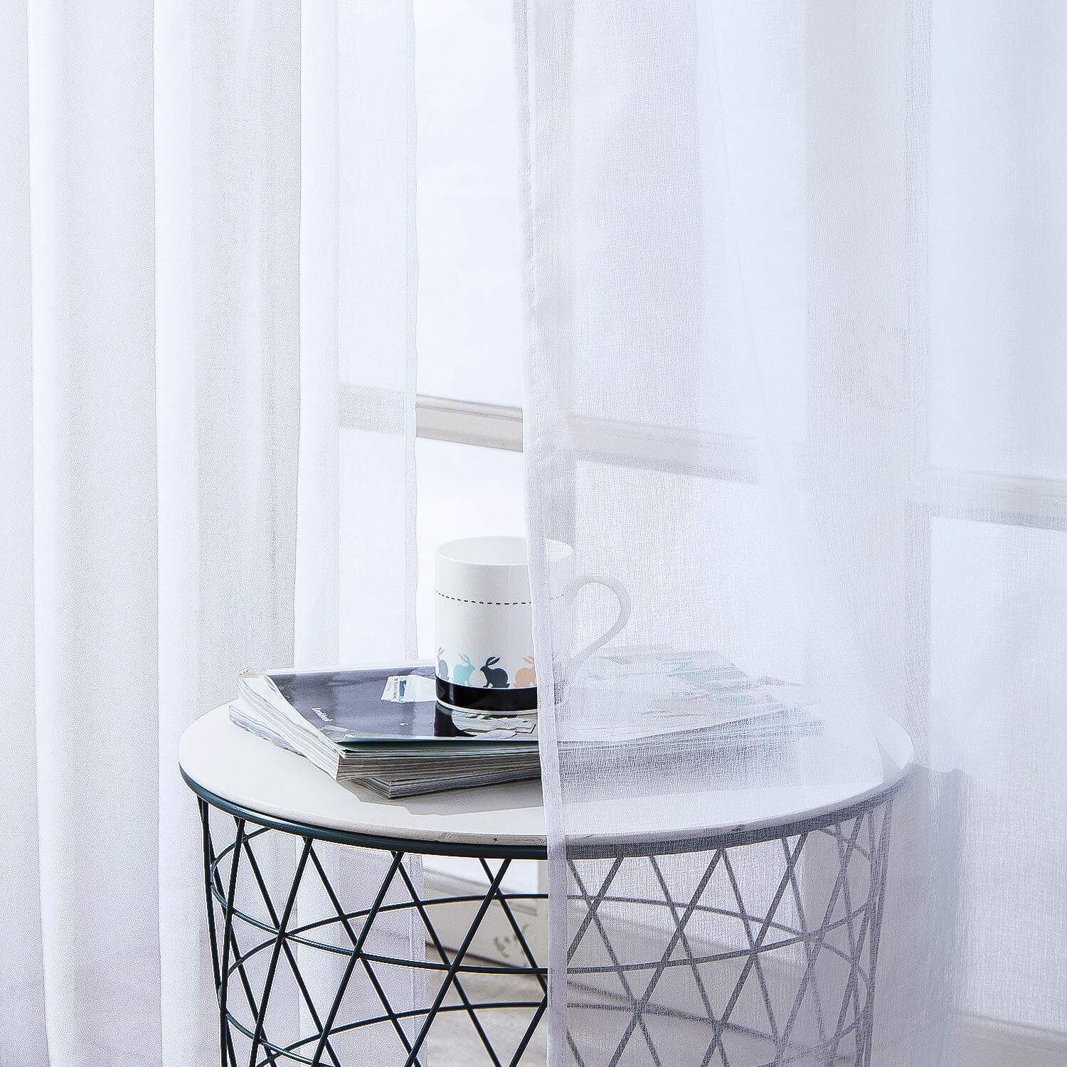 Topfinel レースカーテン おしゃれ 無地 2枚組 幅100cmx丈135cm 北欧 UVカット 省エネ 遮熱 ホワイト 腰窓用 出窓用 掃き出し窓用