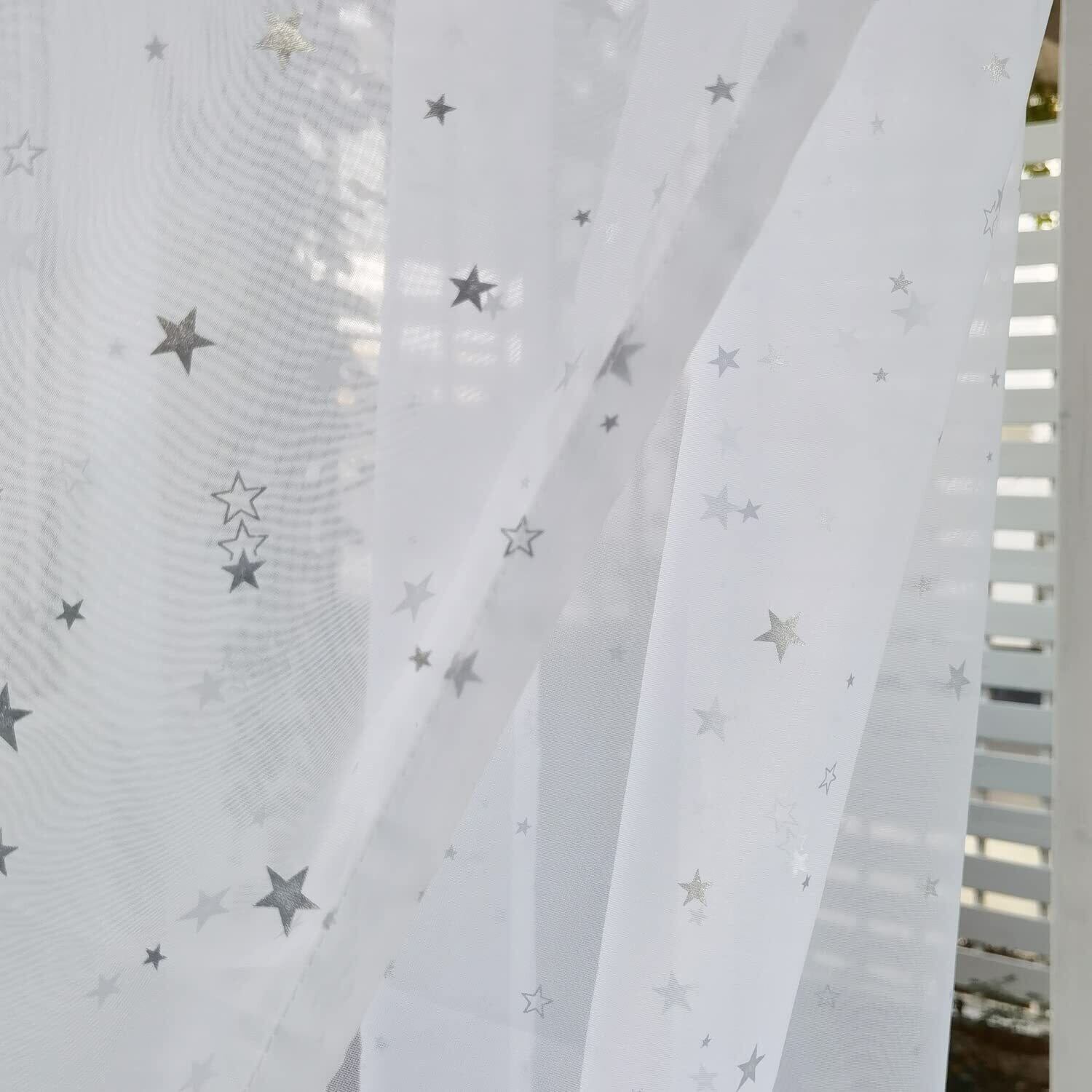 WPKIRA レースカーテン UVカット薄手のカーテン おしゃれ 自然に 換気 半遮光 窓 部屋 寝室 銀色の星 ドア 子どものカーテン 洗濯可能 1組2枚入(幅100cm×丈178cm /1片)