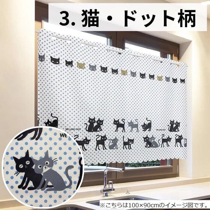 【在庫セール】SAWABIYA カフェカーテン 遮像カーテン 小窓用 カーテン 可愛い 柄 おしゃれ 北欧 丈90cm 72cm 目隠し 断熱 遮光 UVカット 省エネ 洗える 間仕切り 厚手 喫茶店 キッチン トレイ 子供部屋 廊下 1枚入 (幅100cm×丈90cm, 猫柄2) CC-27