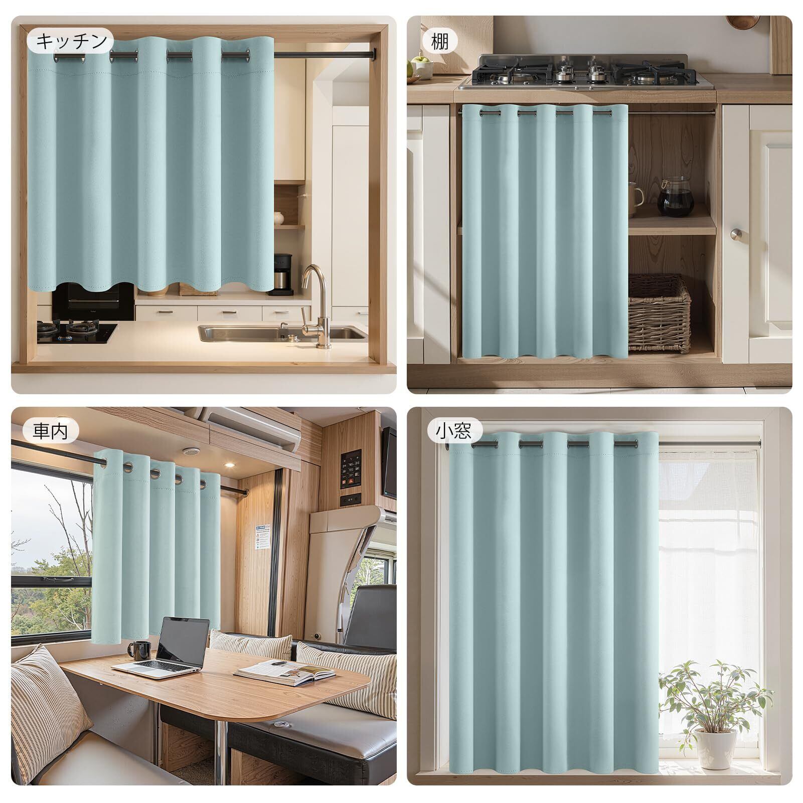 【新春セール】Topfinel カフェカーテン 遮光 カーテン 小窓 70cm丈 ブルー 1枚 ハトメ型 遮光 断熱 UVカット 目隠し 間仕切り 洗える 寝室 キッチン リビング 車内