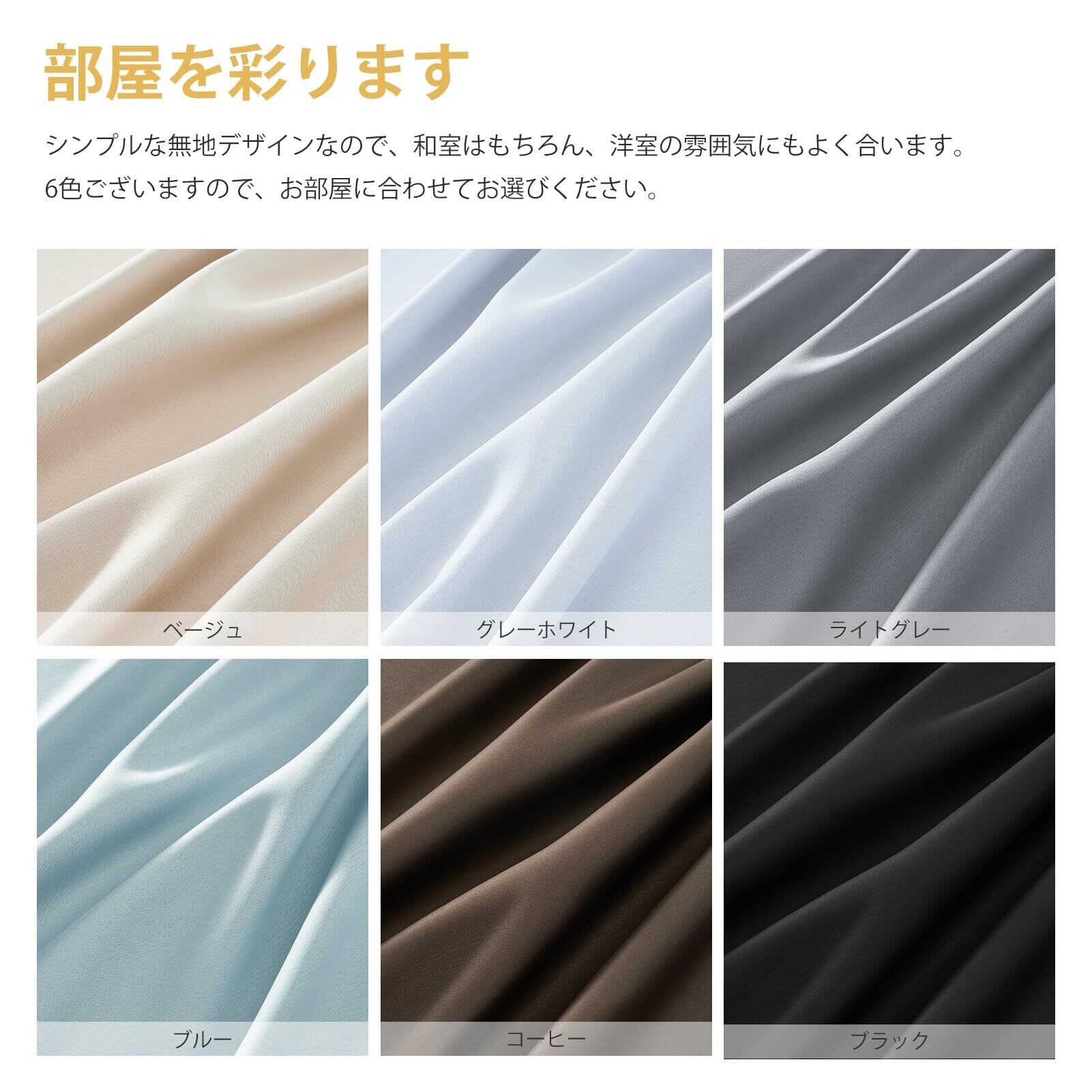 このカーテンは優れた遮光機能を有し、外からの光をしっかりと遮ります。加えて、断熱効果によりエネルギー効率を向上させ、快適な居住環境を作り出します。特に寝室やリビングでの利用に最適です。