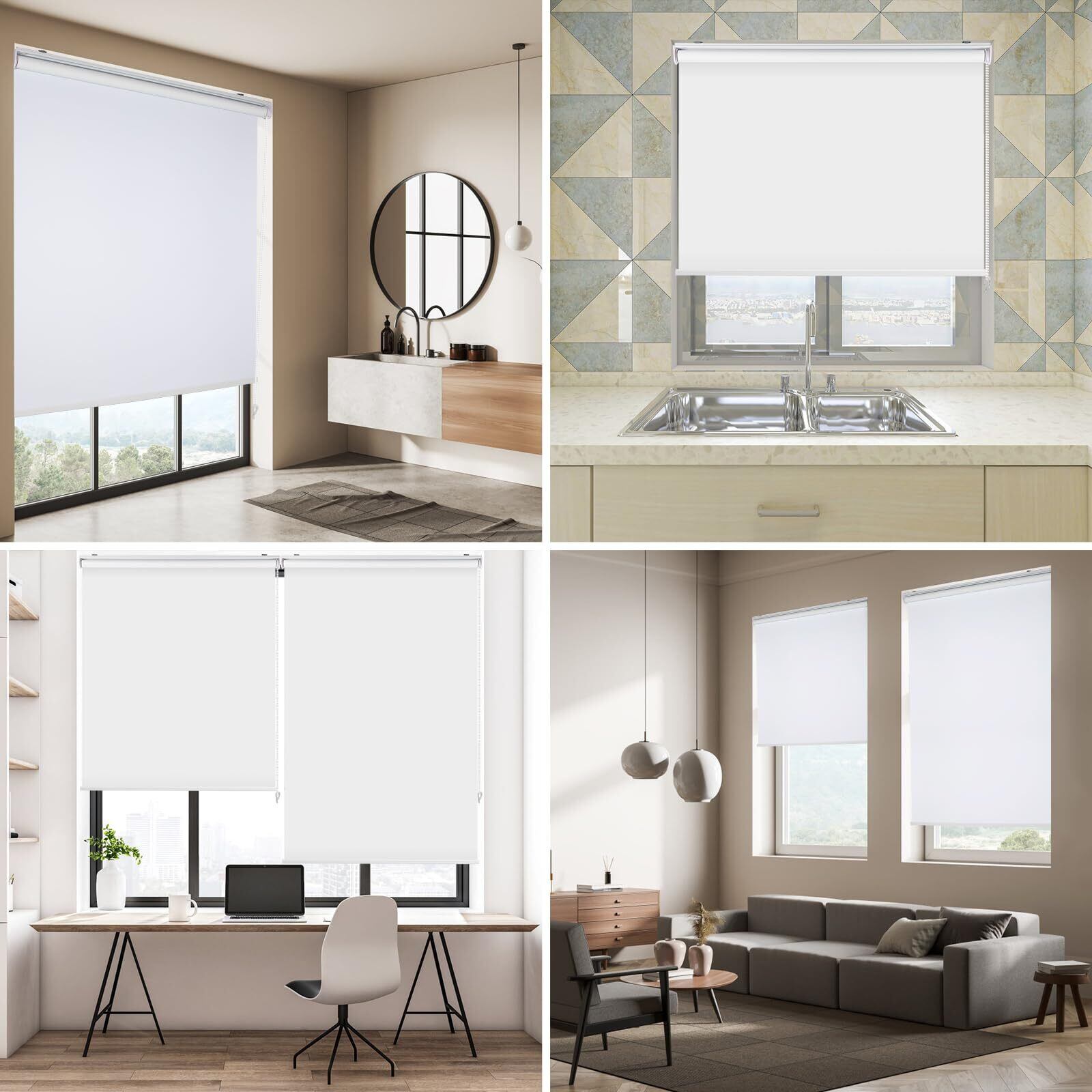 【ブラインドの生地】表面素材:スクリーン:ポリエステル100% ヘッドレール素材:アルミニウム チェーン素材:POM ボトムバー:メタル カラー:ホワイト キッチン、バスルーム、リビング、オフィス、寝室、ガレージ、書斎、託児所、ホテルなどに適しています。