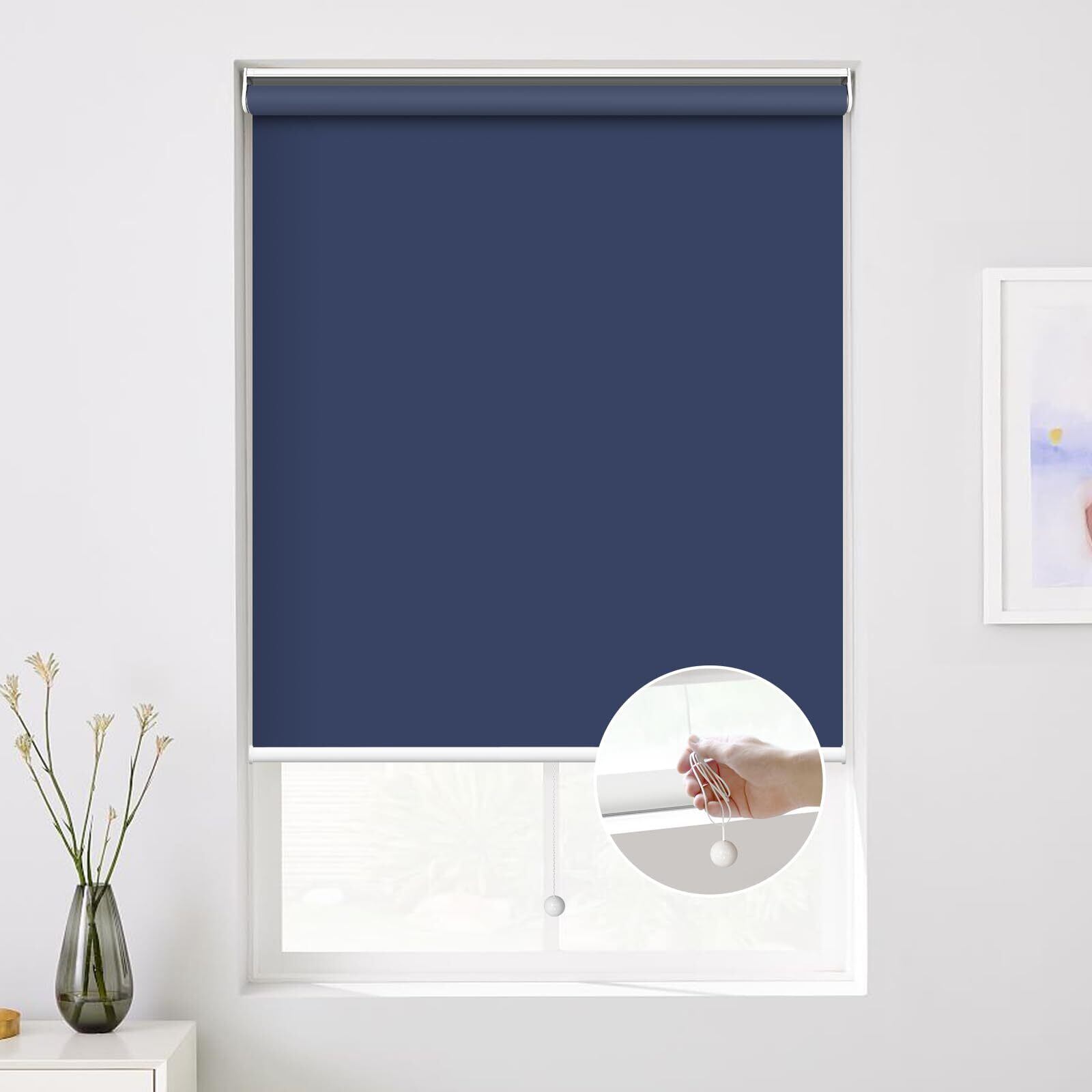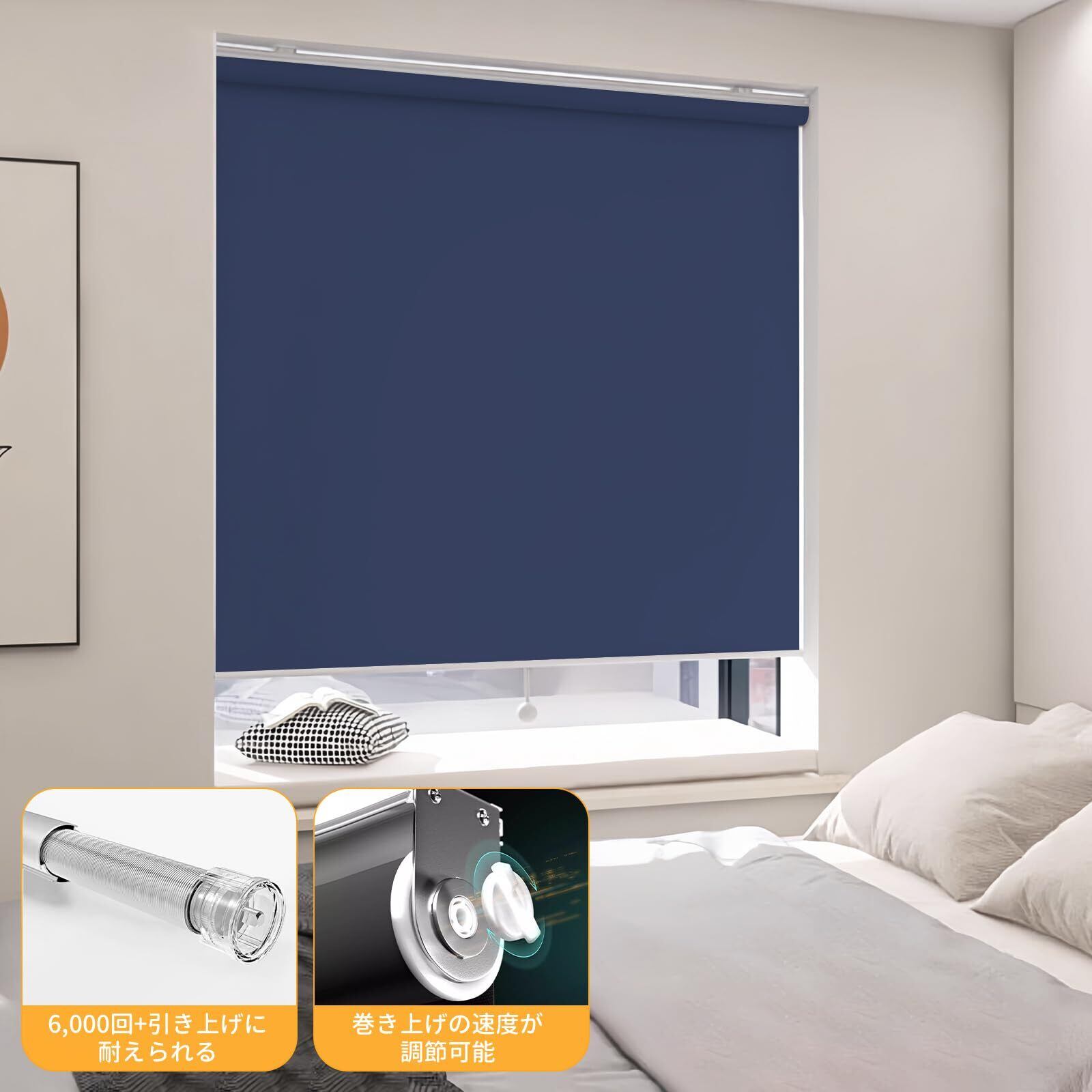 HOCRISSON ロールスクリーン 1級遮光 ロールカーテン プルコード式 UVカット 無地 カーテンレール取付可能 遮熱 断熱 目隠し 取り付け簡単 部屋 寝室 サイズ指定無料 オーダーメイド ダークブルー 幅160×丈90