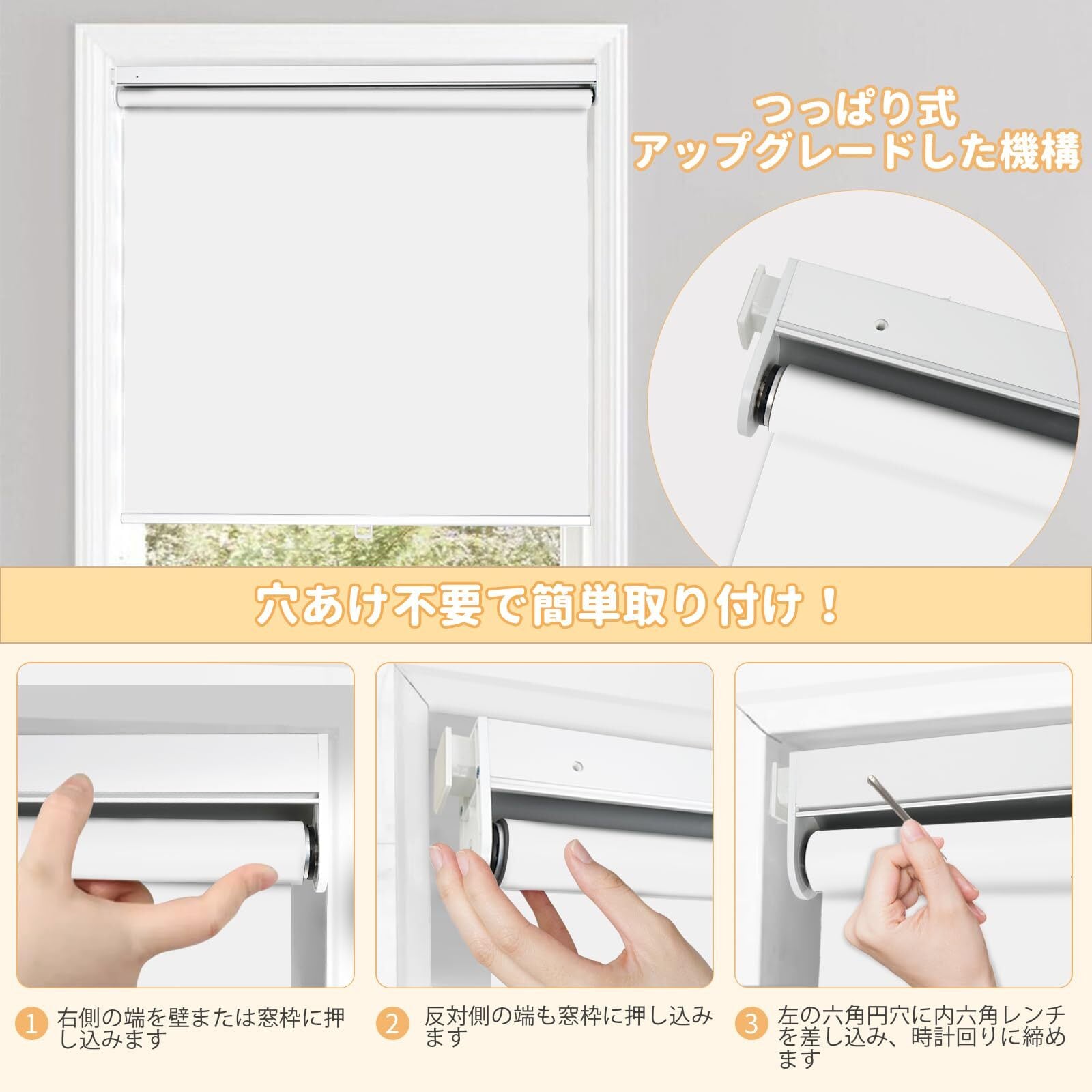 【数量限定】HOCRISSON つっぱり式 ロールスクリーン 1級遮光 ロールカーテン プルコード式 ロールカーテン サイズ指定無料 断熱 遮熱 UVカット 突っ張り式 穴あけ不要 オーダーメイド 目隠し 取り付け簡単 ホワイト 幅95×丈240