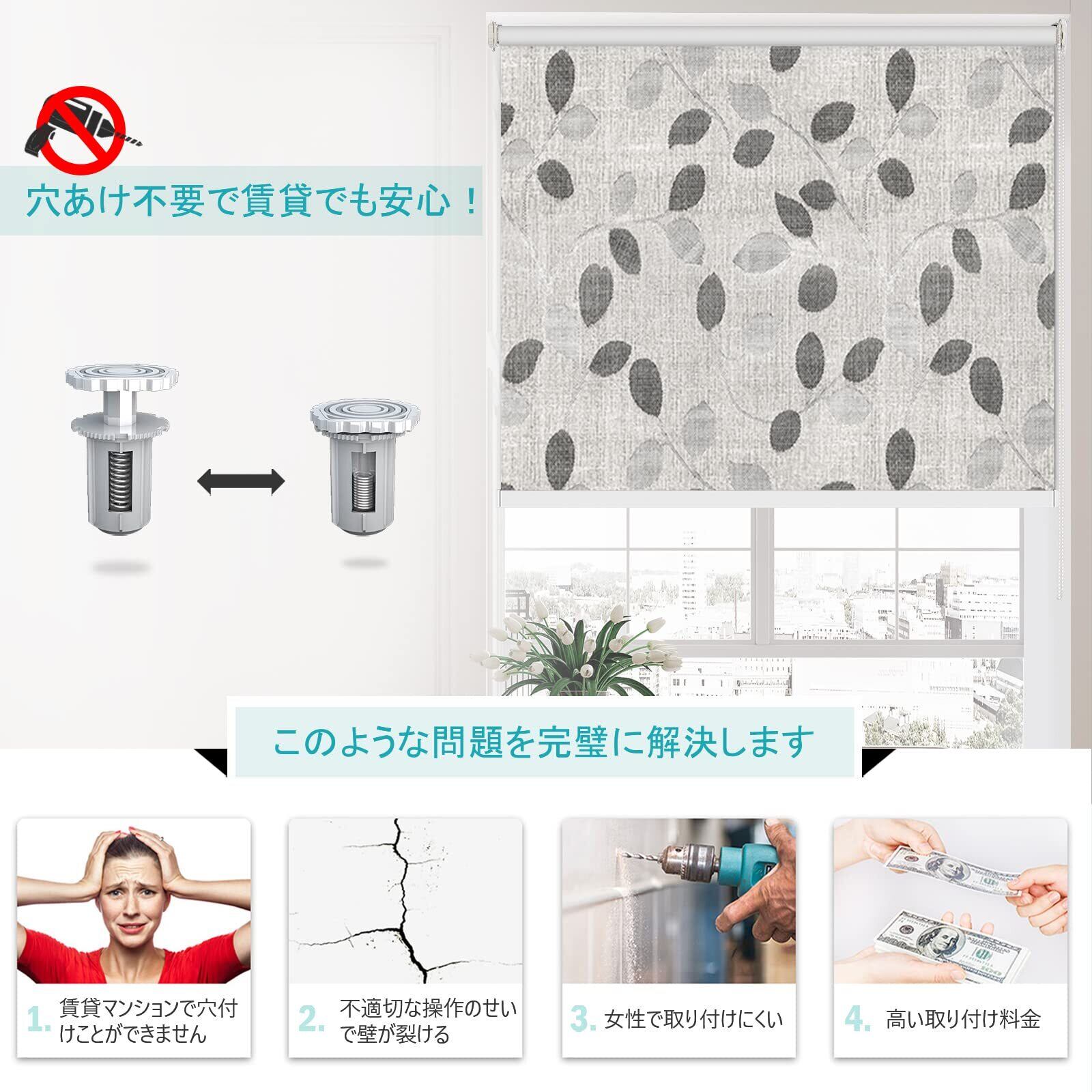 【一級遮光&UVカット】ロールカーテンの遮光率は99%以上、光とノイズを効果的に抑えます。昼間に日差しを遮り、家の中の温度上昇を防ぎ、紫外線もブロックします。寝室や強い西日のあたる部屋、家具や書類などを日焼けから守りたいと言った用途に適しています。▲ご注文幅について:例えば:窓枠内寸の幅は120㎝の場合は、ご注文幅は120㎝でください。120㎝より短い場合は取り付けません。ご注意ください。また、窓枠の幅を採寸する際は、正確に水平に測ってください。窓枠の上部で測ってください(コンベックスで測定することをお勧めします)