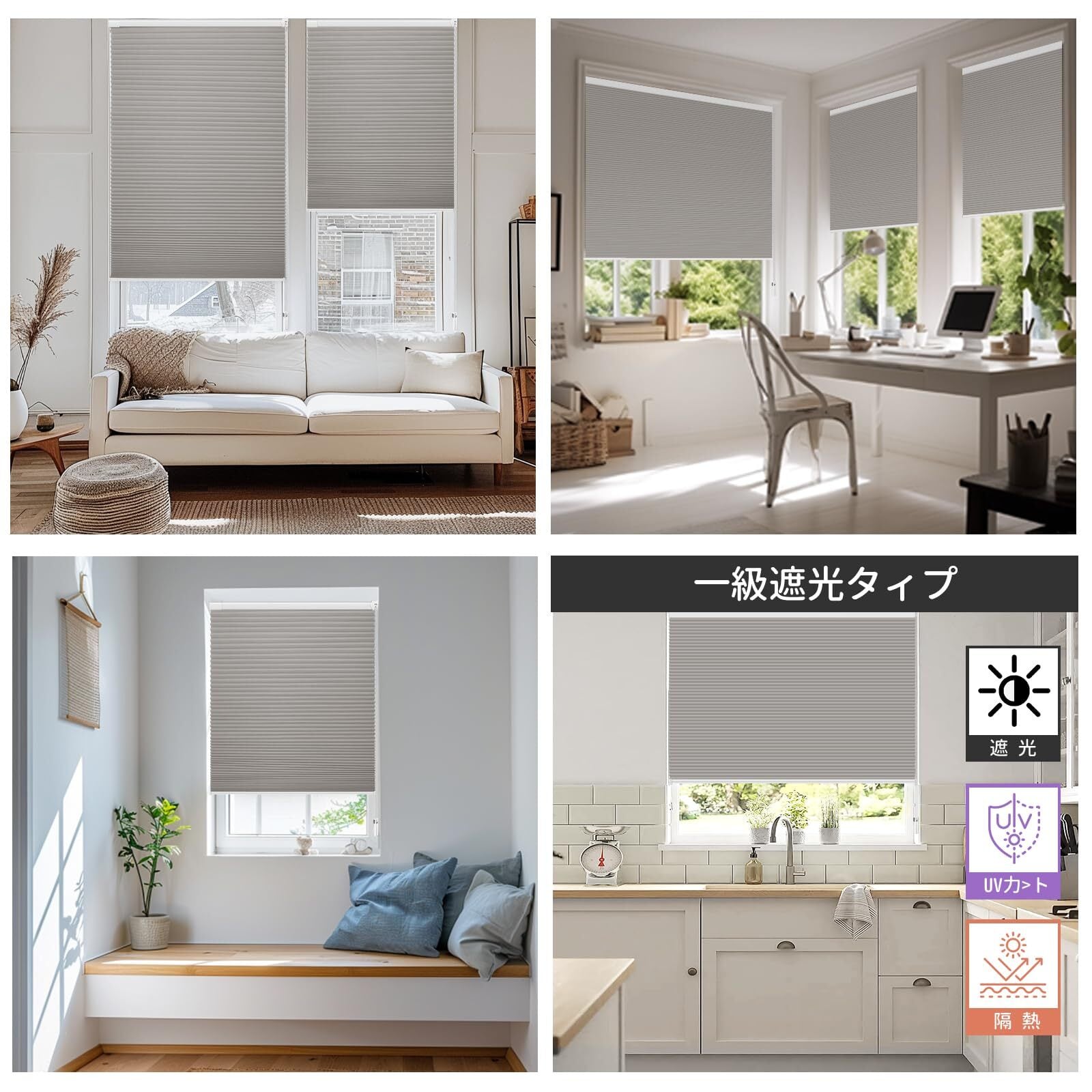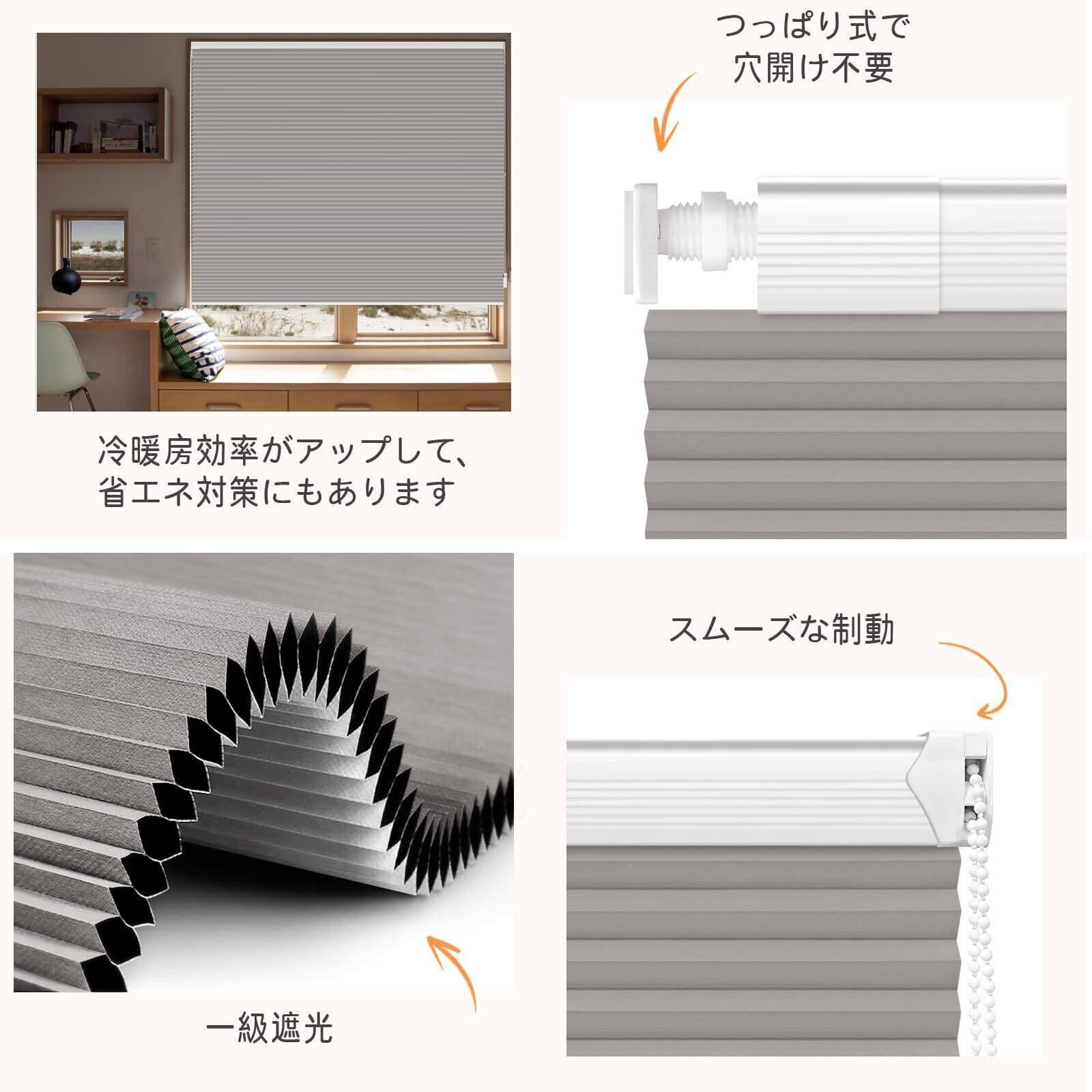 ハニカムシェード つっぱり式 ハニカムスクリーン 突っ張り式 プリーツスクリーン ハニカムブラインド ロールスクリーン 遮光ブラインド 穴開け不要 1級遮光 採光 遮熱 断熱 間仕切り 防音 省エネ 賃貸OK 1cm単位でオーダー グレー 幅45×丈120cm