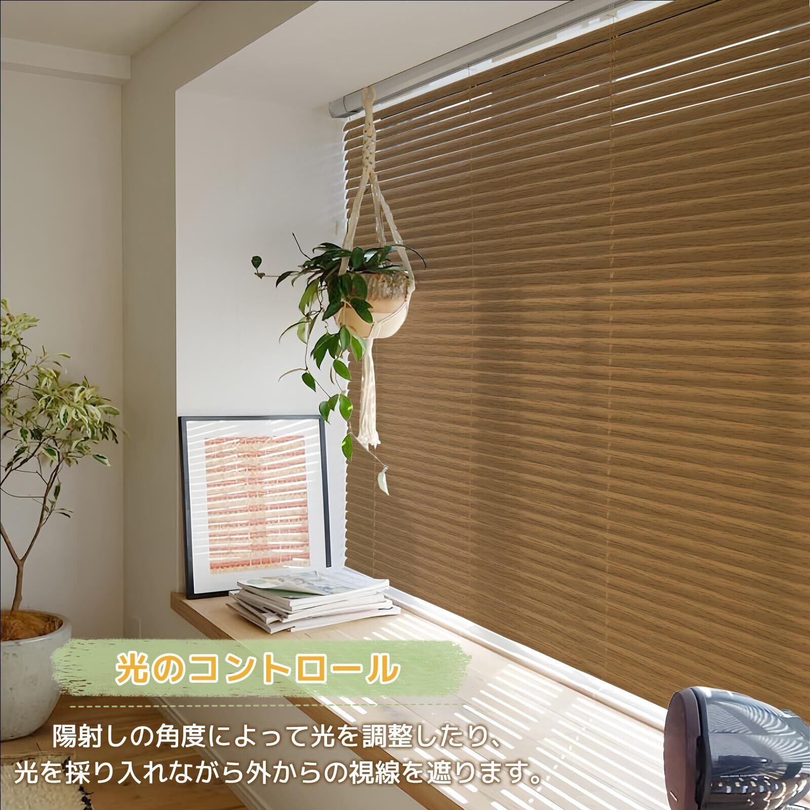 HOCRISSON ブラインド つっぱり式 アルミラインド 穴あけ不要 オーダーメイド 防水 遮熱 遮光 調光 簡単取付 浴室用 目隠し 18色 ブラウン(木目調) 幅115×丈90