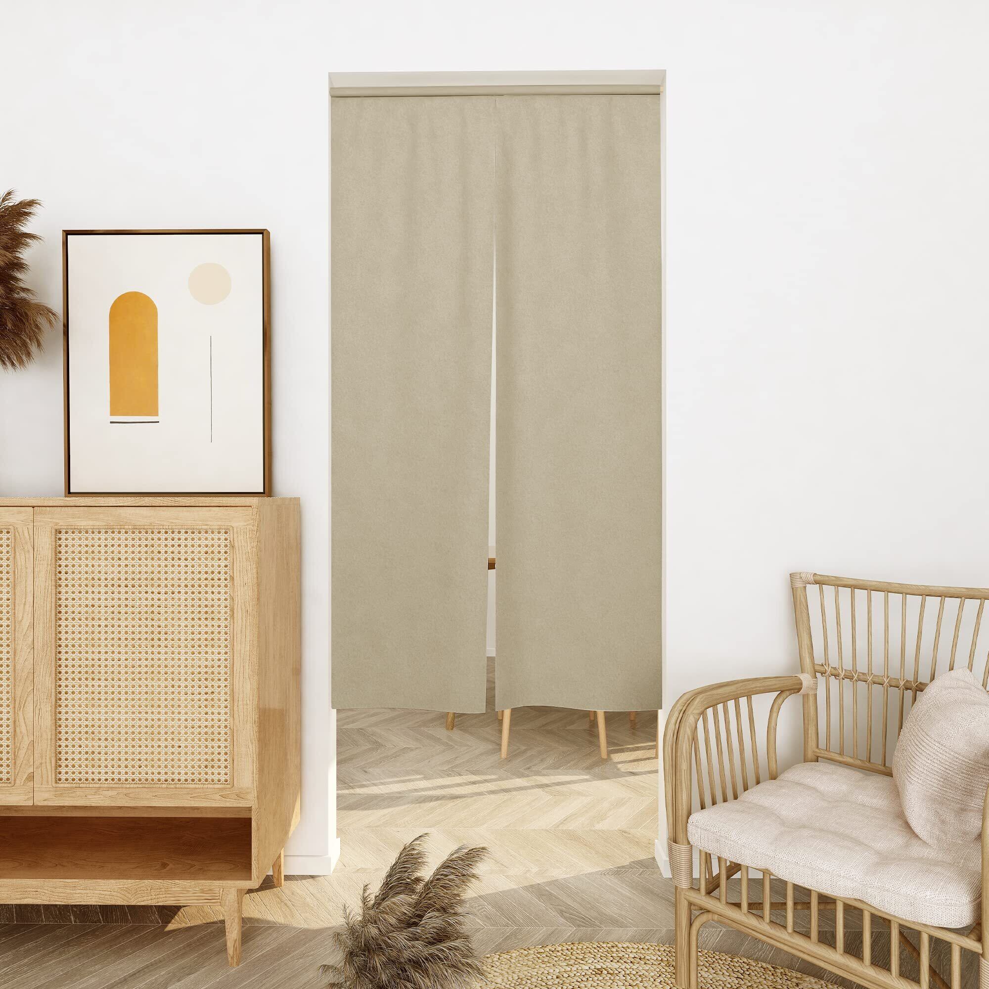 Deconovo 遮光 のれん 玄関 キッチ リビング 飲食店 出入り口 和風 断熱カーテン 防寒 防音 厚手 間仕切り 無地 幅72丈150cm ベージュ