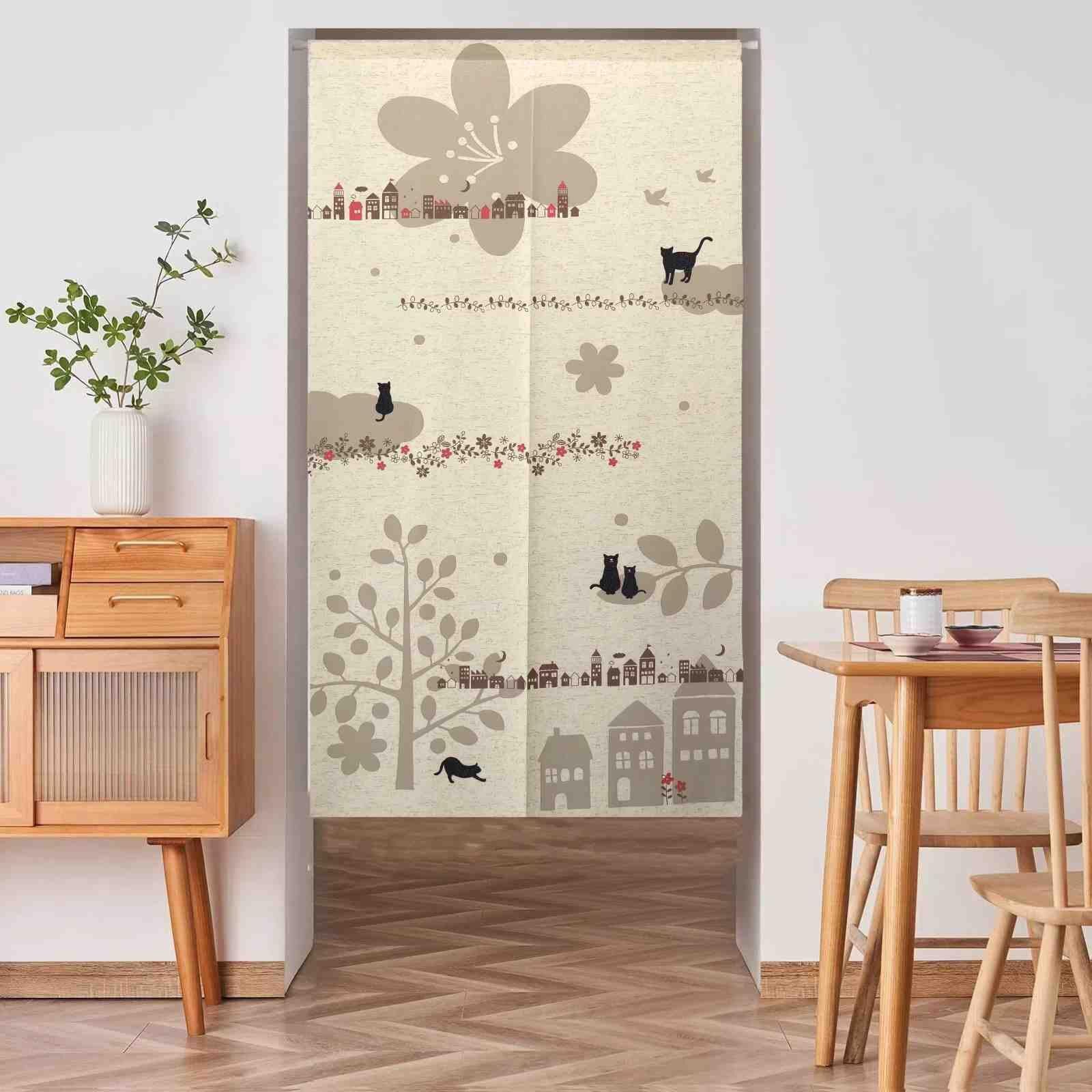 のれん 暖簾 おしゃれ 可愛い 北欧風 ネコ柄 間仕切りカーテン ロング 目隠し 遮光 玄関 階段 廊下 リビング 脱衣所 お風呂 戸口カーテン プライバシー保護 ドア 仕切り (猫・ベージュ, 幅85丈150cm) 82333