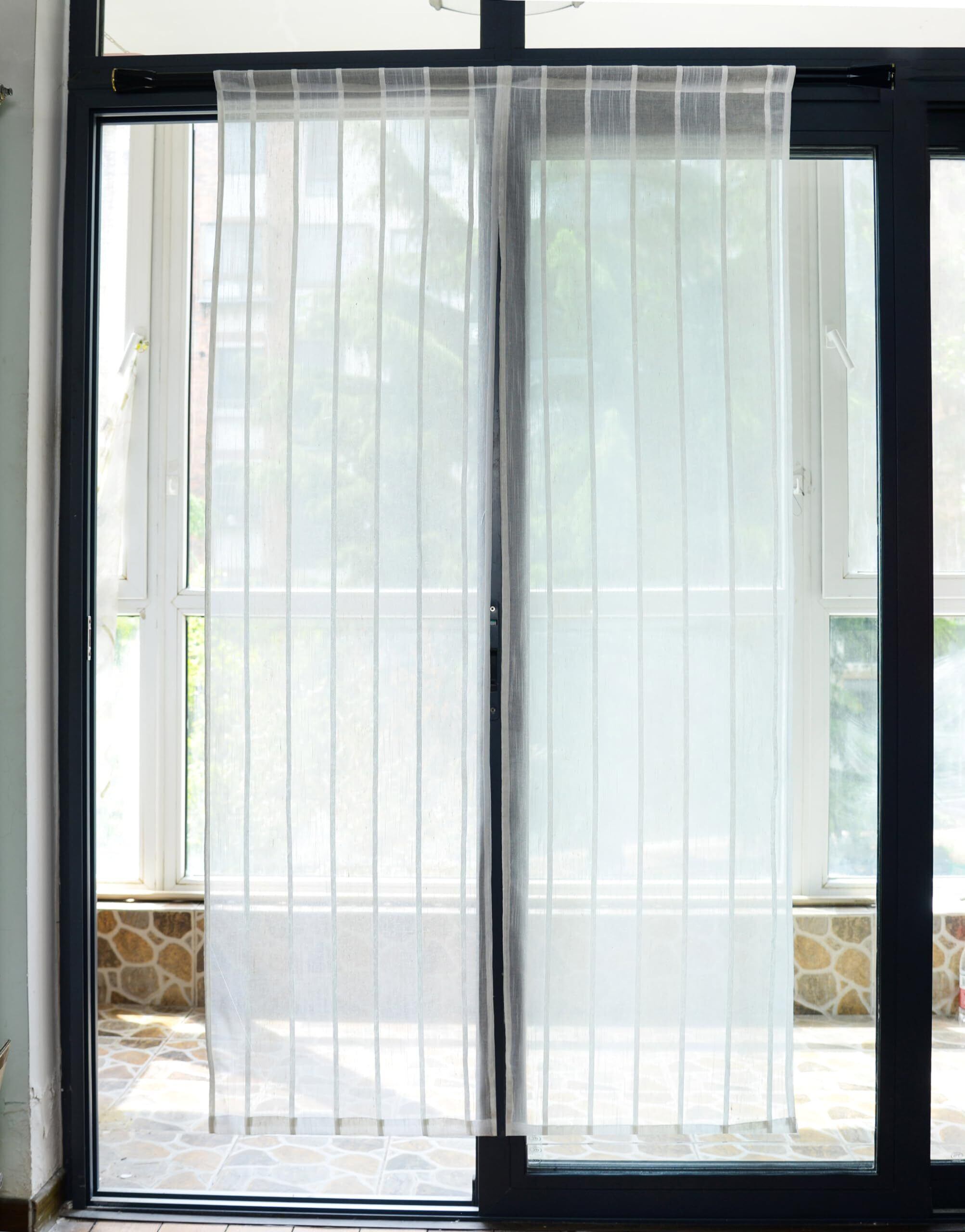 薄手の麻風生地を使用しており、外からの視線をやさしく遮りますが、適度に光を取り入れ、柔らかな印象を与えます。日中でも明るすぎず、快適な空間を保つことができます。また、プライバシーを守りつつも、開放感を大切にしたデザインです。