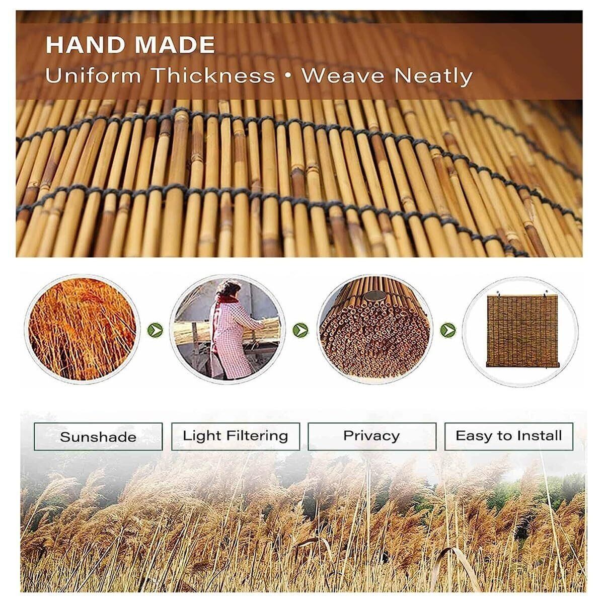 手織り、100%天然リード、UVカット、日焼け止め、プライバシーを提供、日よけ、装飾、通気性、光フィルタリング、換気、断熱、耐水性