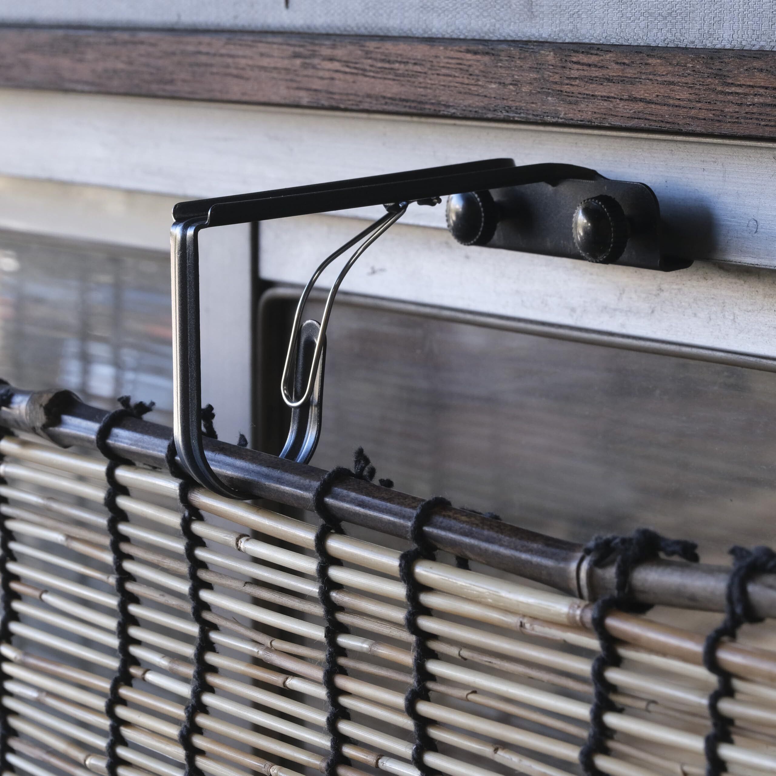 取付金具は「水勘製簾所 すだれ用ハンガー」で検索の上、黒丸竹専用のすだれハンガーをお買い求めください