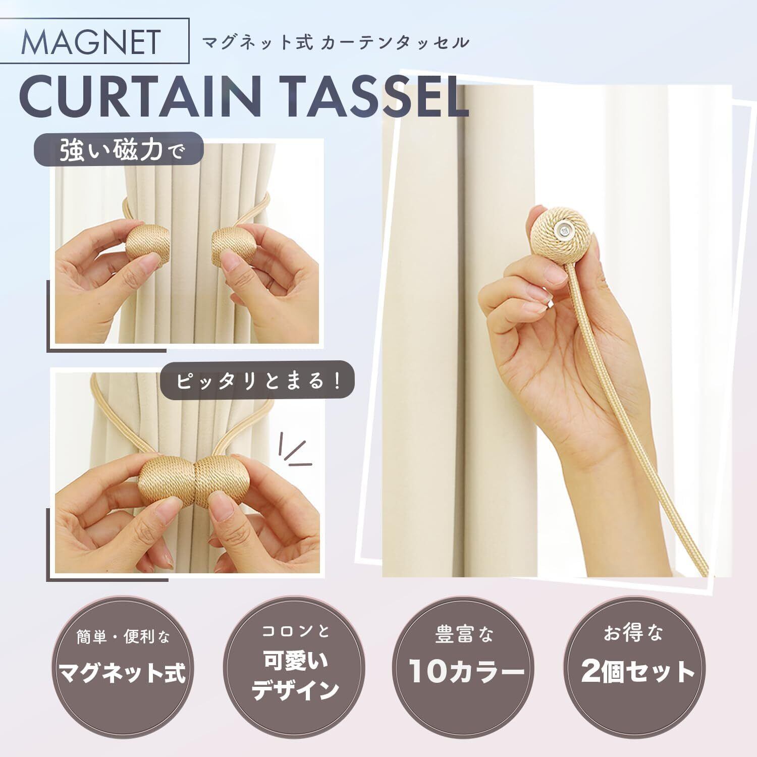 カーテンタッセル カーテン留め飾り マグネット 磁気 マグネット カーテン クリップ 強力 磁石 2個セット 留め具 おしゃれ とめる やつ パワー磁石 チェリータッセル ふさかけ不要でピタッ シャンパン色