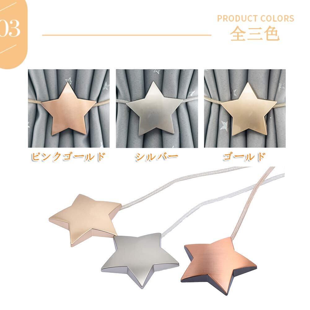 Sitengle カーテンタッセル マグネット 星 カーテンアクセサリー 強力磁石 カー テン留め カーテン留め飾り プレゼント 人気 (ピンクゴールド, 2個)