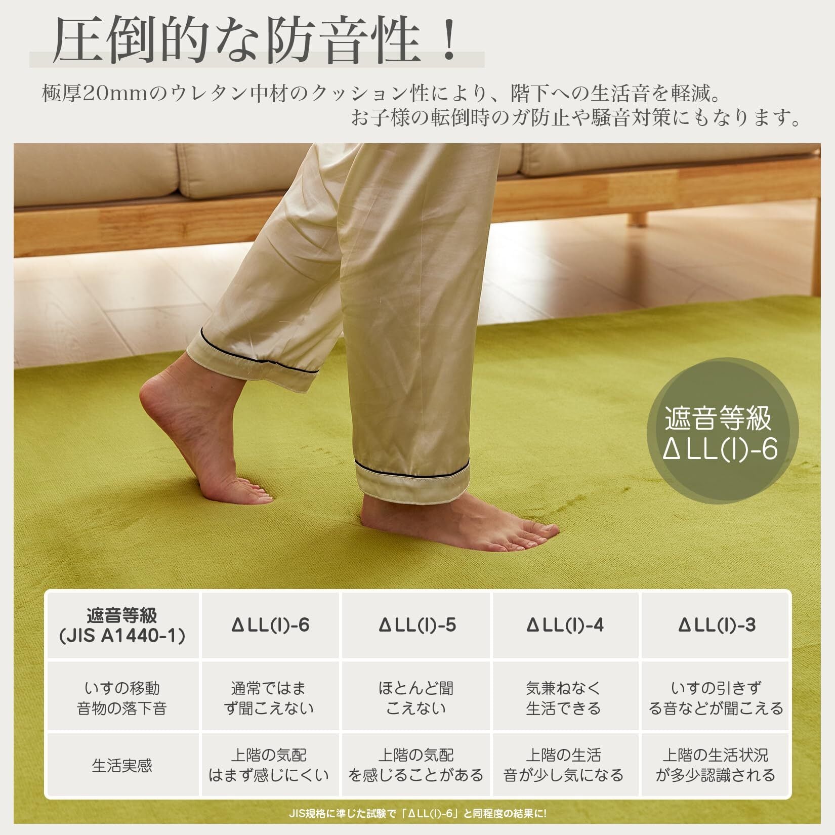 200×250cmのサイズは、冬用の床暖房やホットカーペットにも対応しており、寒い季節でも温かくお過ごしいただけます。多機能性とデザイン性を兼ね備えた一枚で、あなたの暮らしをより豊かに彩ります。