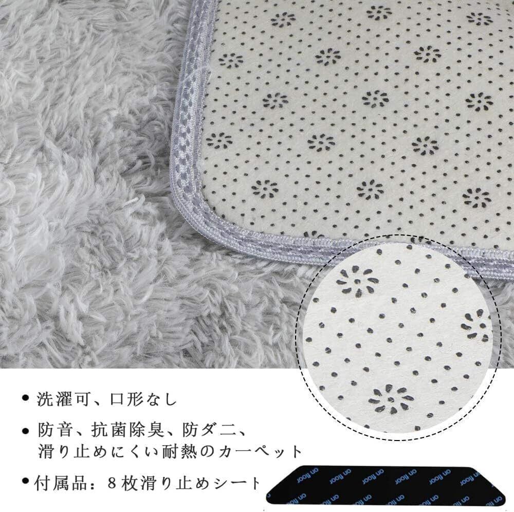 このカーペットは洗える仕様になっているため、いつでも清潔に保てます。ダストや汚れを気にせず、安心して日常生活を楽しむことができます。また、8枚の滑り止めシートが付属しているので、カスタマイズも自由。