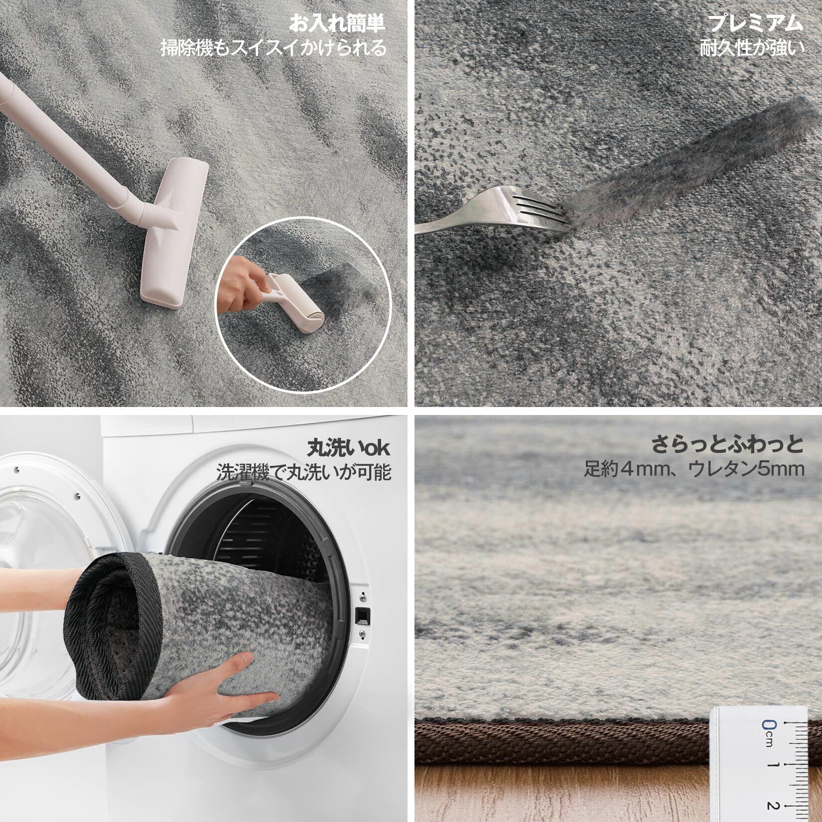 家族が集まる空間だからこそ、カーペットは清潔に保ちたいもの。このラグは洗濯機で簡単に洗え、いつでも清潔な状態を保つことができます。お子様やペットがいる家庭でも安心してお使いいただけます。