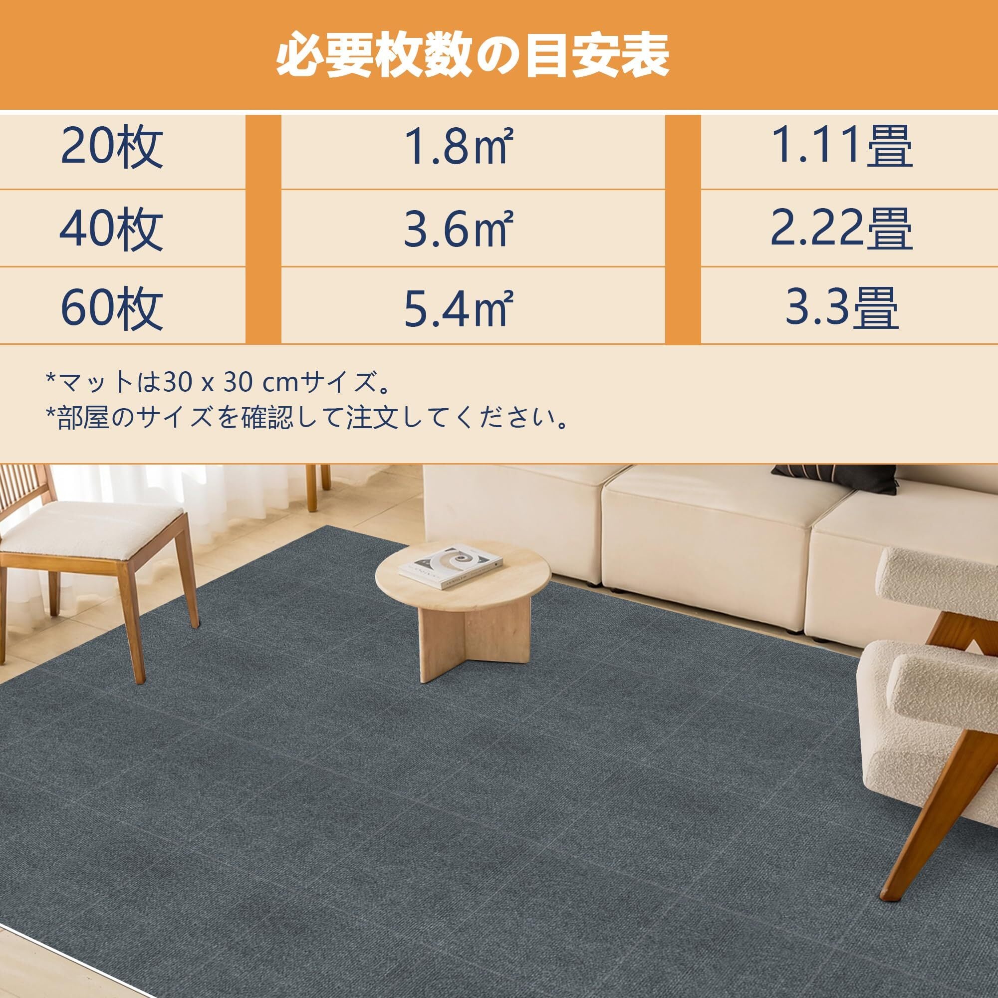 【 限定ブランド】Piiyoow タイルカーペット 30*30cm 20枚 ジョイントマット ペット カーペット パンチ・タイルカーペット 床マット 適度な厚み ペットフレンドリー すべりどめ 騒音を減らす 吸着力が強い ビッグサイズ 床暖房対応 簡単な洗浄 マルチシーン対応【ダークグレー】V