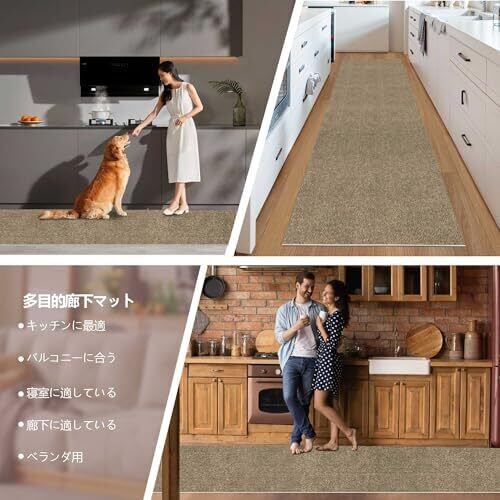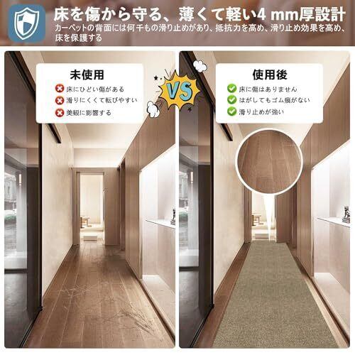 【シンプル設計】廊下保護マットはPU&ポリエステル不織布製。廊下/玄関/階段/キッチンなど多用途に展開可能。床のキズ・摩耗を防止し、圧力分散で床のへこみを軽減。歩行時の衝撃吸収に優れ、床保護に最適です。※濡れた場合は速やかに乾燥または交換ください