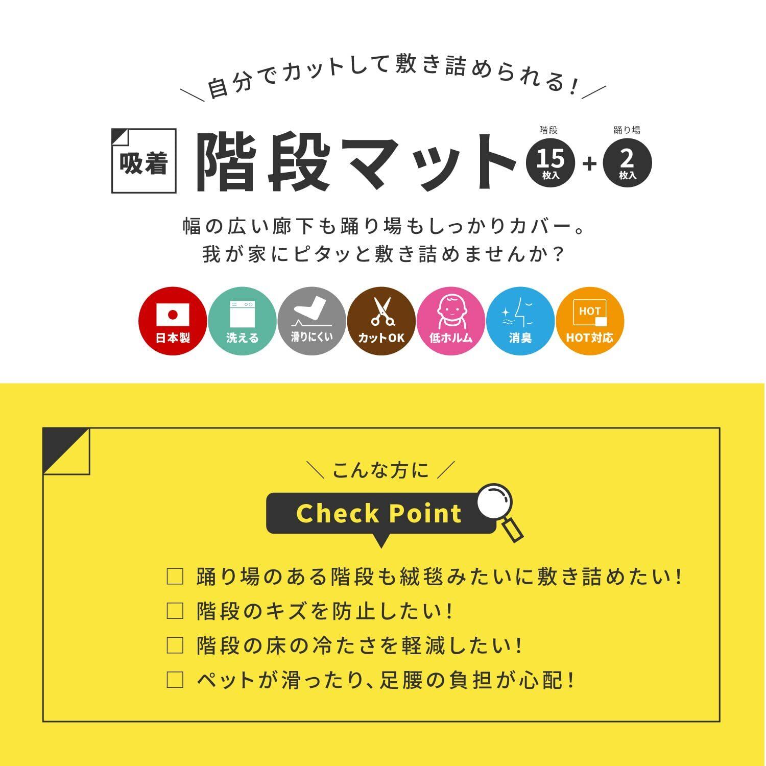 萩原(Hagihara) 階段マット 踊り場付き (ベージュ,約90×21cm 15枚・約90×90cm 2枚) 吸着マット 洗濯機OK カットOK 滑り止め 防音 キズ防止 日本製