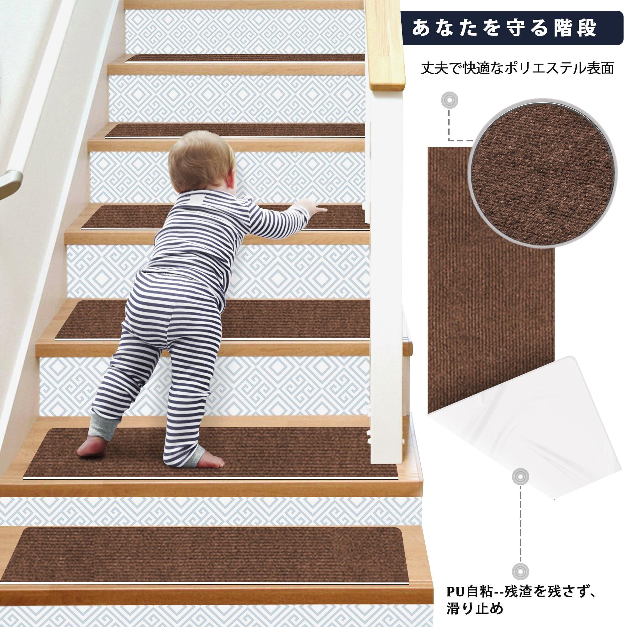 【在庫セール】【 限定ブランド】階段マット 階段用滑り止め70X22cm 【15枚入り】XIWEIYI 階段カーペット厚み4mm 階段敷き吸着マット床保護 ステップマット 階段クッション 転倒防止 キズ防止足腰負担軽減 ズレない子供や高齢者 ペットなどの安全対策に 猫犬階段滑り止めマット(ブラウン)
