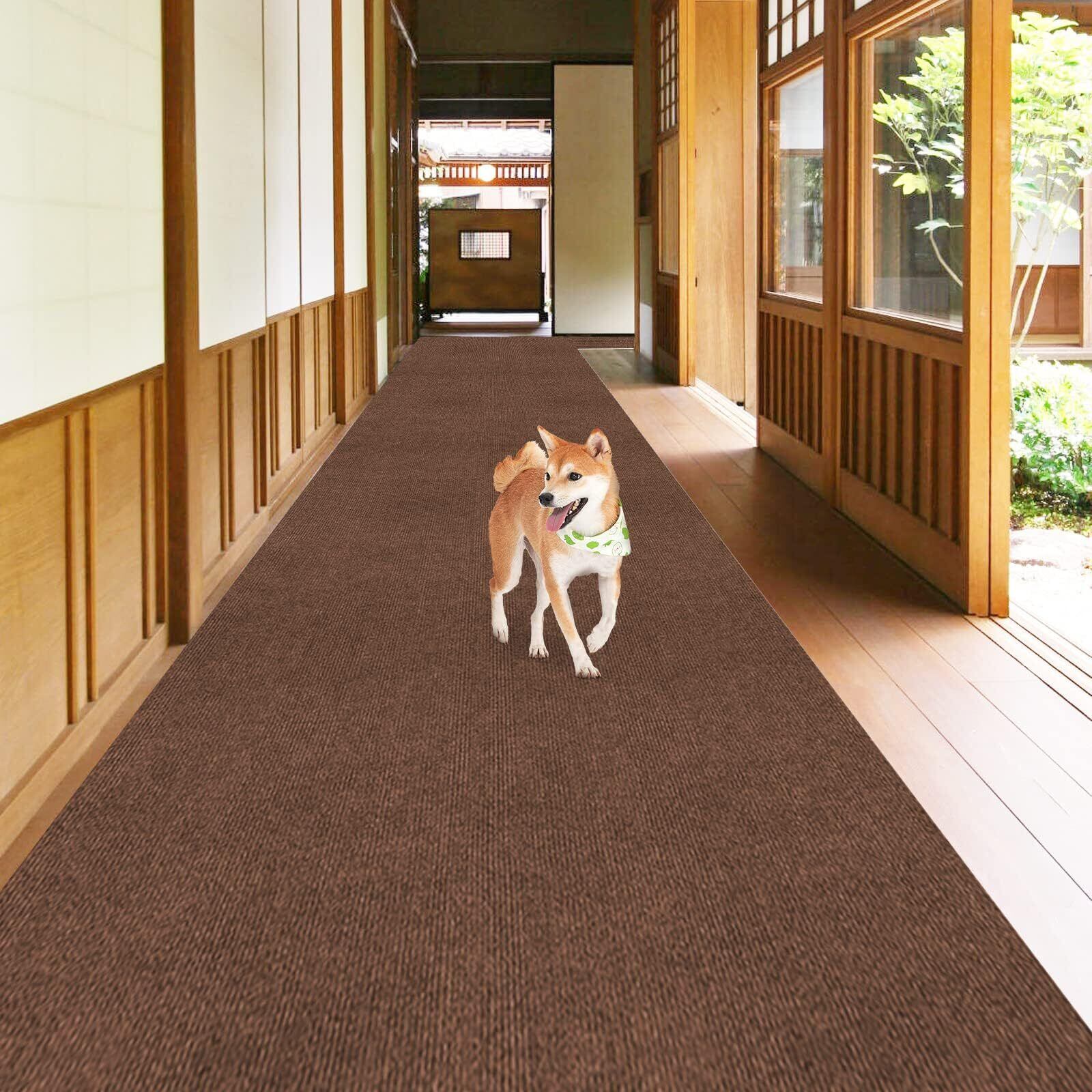 廊下敷き 廊下 カーペット VOTUDX 約600*60cm 防音滑り止めマット 洗える 4mm 足腰負担軽減 床暖房対応 騒音対策 転倒防止 撥水 ロング/ロール/キッチン/玄関マット(ブラウン)
