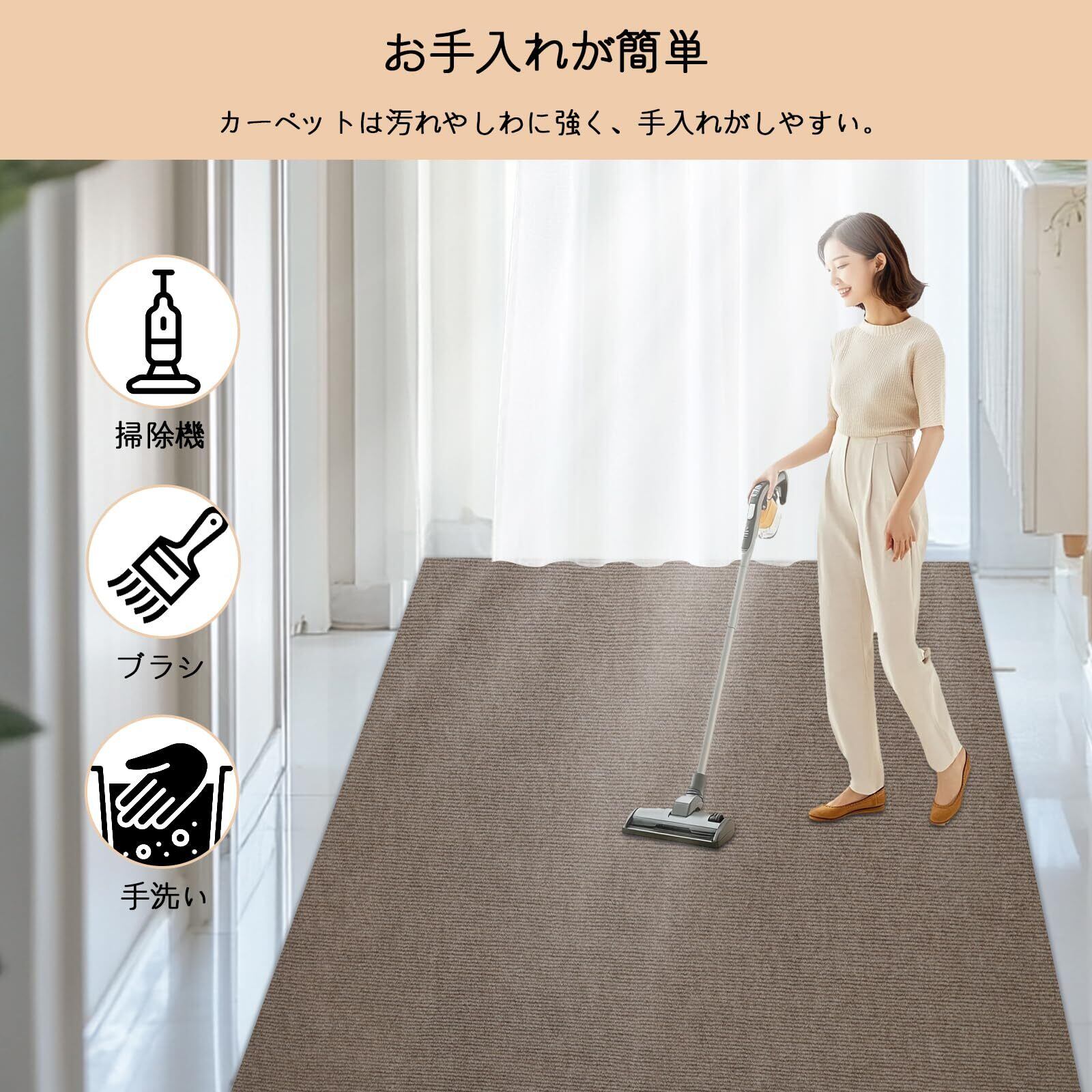 自由に裁断できるこのカーペットは、廊下だけでなく、部屋の形やサイズに合わせて自由にカットできます。キッチン、玄関、リビングなど、さまざまなシーンでご利用いただけます。表面が汚れた際は、簡単に洗えるのでいつでも清潔を保てます。