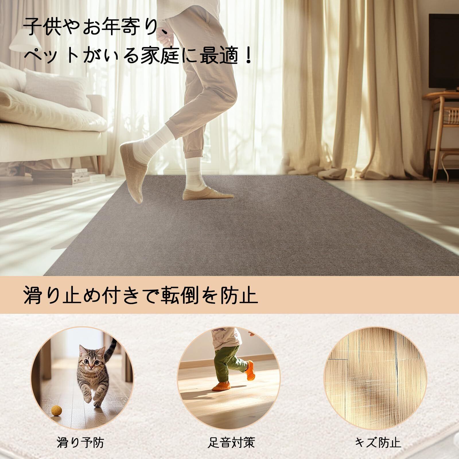 このカーペットは、スレに強く、床をしっかりと保護します。日常の使用での摩耗を防ぎ、長くご愛用いただける耐久性があります。特にペットや子供がいる家庭にも安心してお使いいただけます。