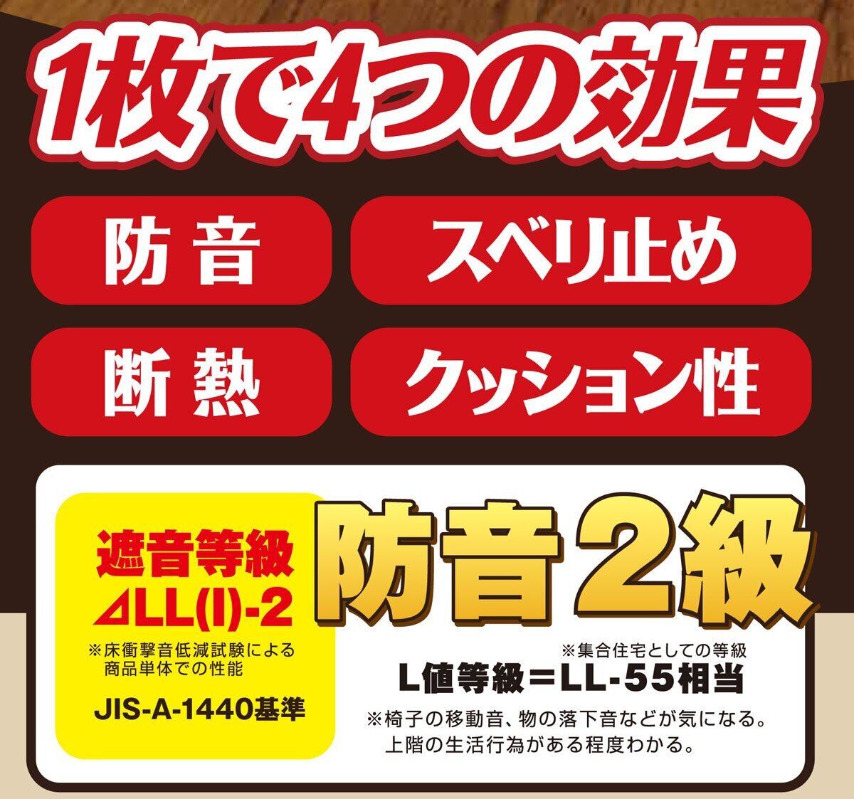 3畳分の広さを持つこのシートは、リビングや寝室、キッチンに至るまで、幅広いシーンで活躍します。フローリングやカーペットの上に敷くことで、音の響きを和らげる他、滑りにくい環境を提供します。
