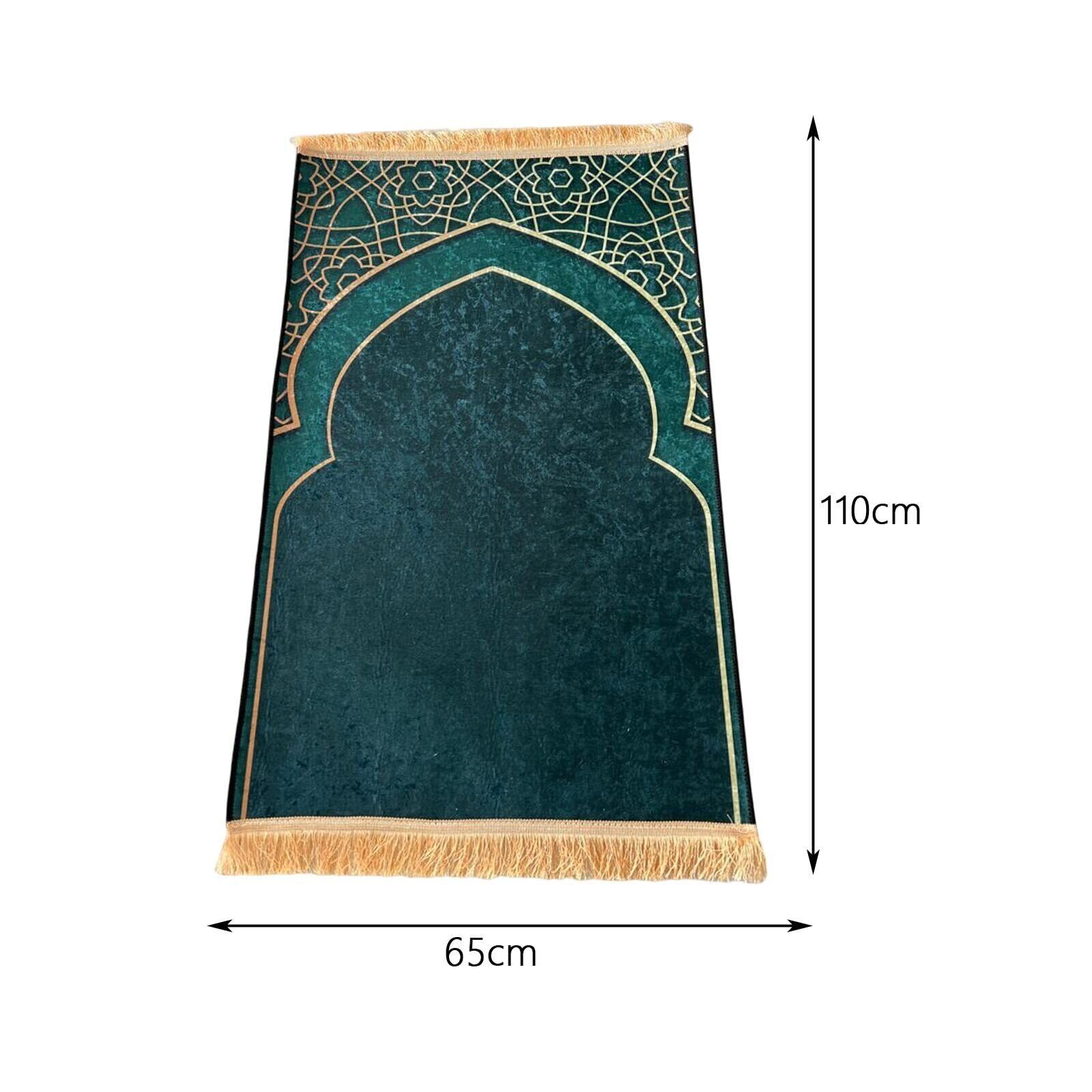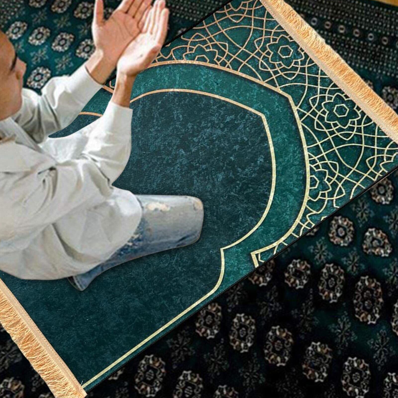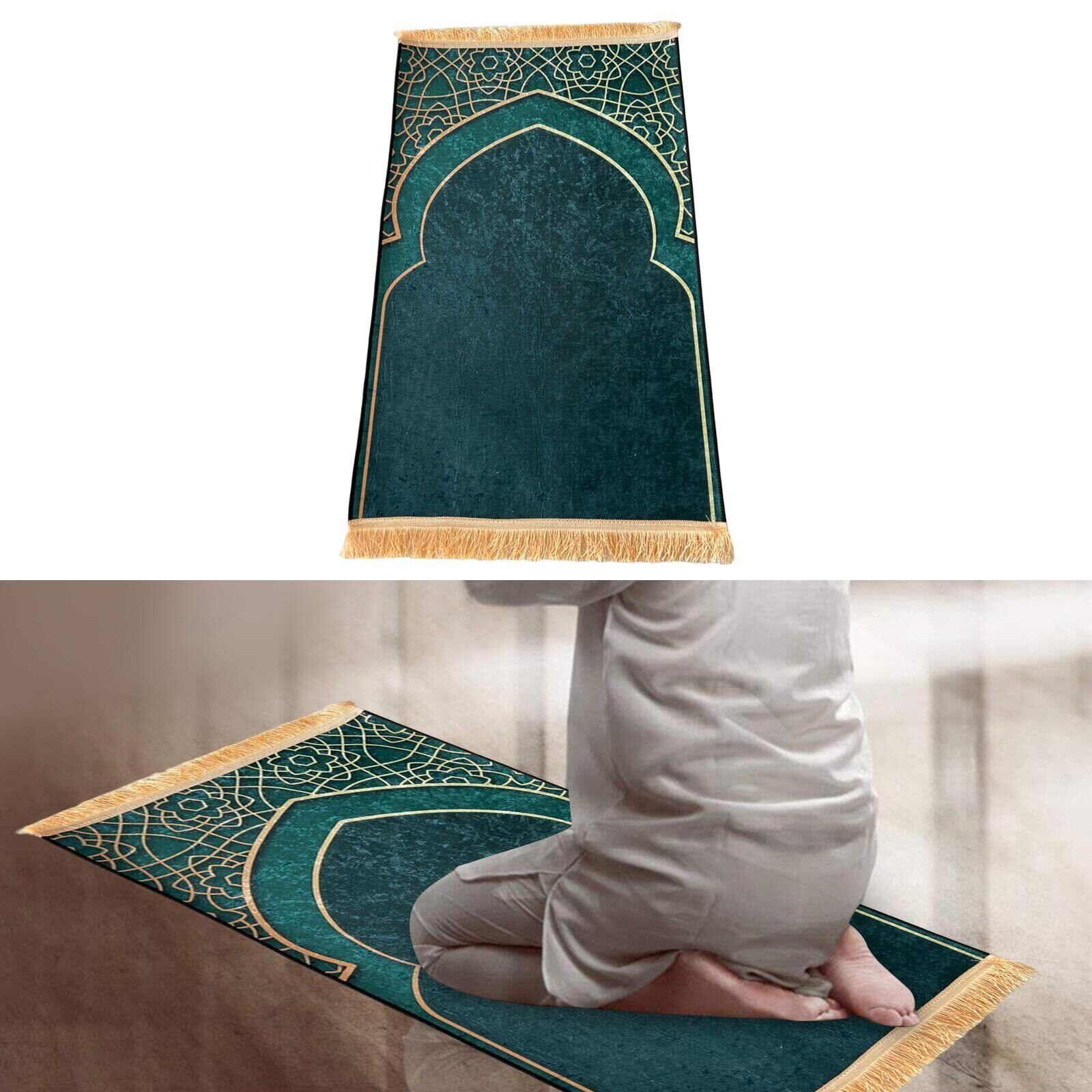 【数量限定】JISADER ソフトイスラムイスラム教徒の祈りの敷物フロアカーペット祈りマット滑り止め65cmx110cmポリエステルイード女性男性ベッドサイドバルコニールームのための絶妙, 緑