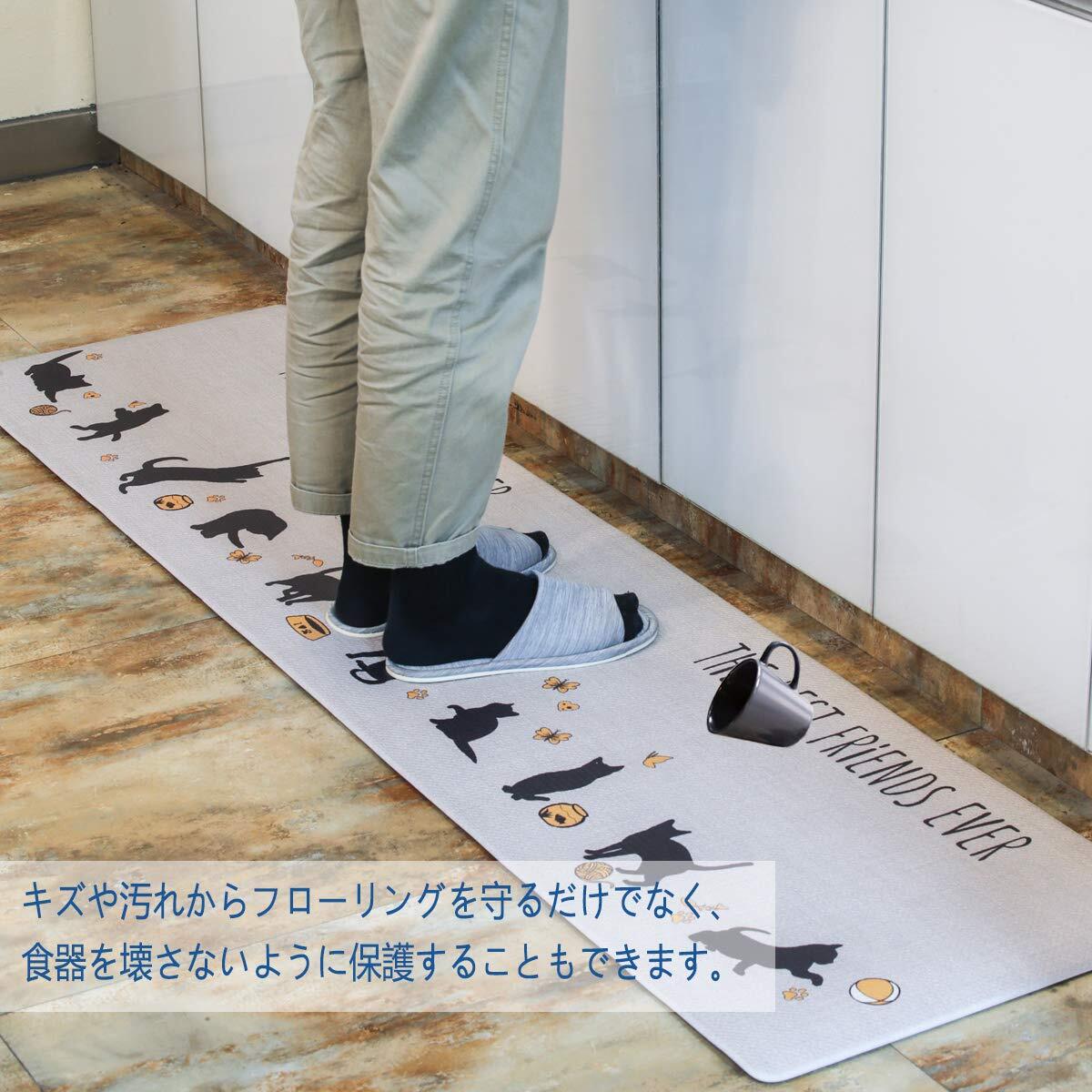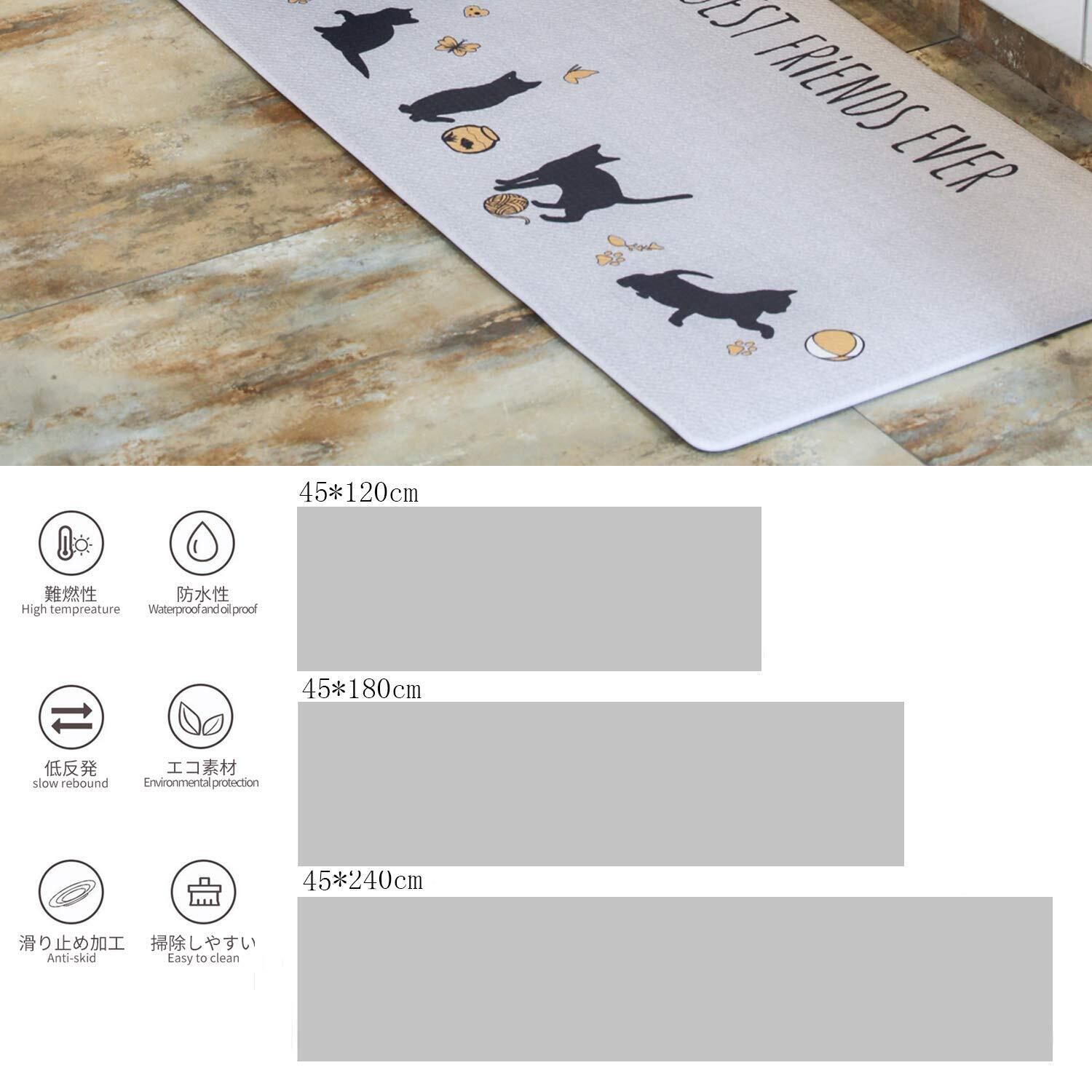 Ashmore キッチンマット 拭ける台所マ ット ずれない PVCロング床マット 撥水 おしゃれ 滑り止め 抗菌 防炎 厚さ10mm お手入れ簡単 約45cm*240cm 猫