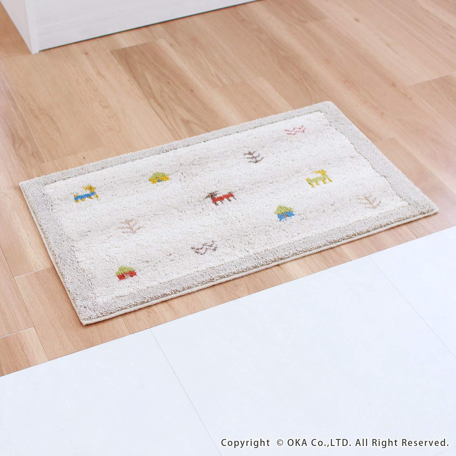 オカ(OKA) ギャベ コーナー吸着玄関マット 約45cm×75cm ベージュ (ギャベ柄 エスニック 洗える 吸着 ラグ カーペット 日本製 大判)