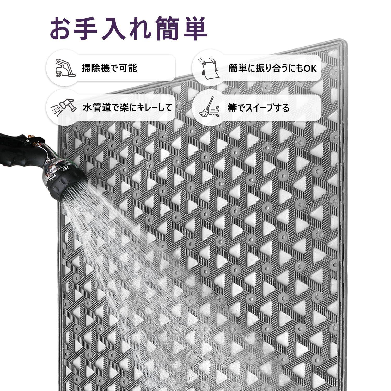 汚れた際には水で簡単に洗い流すことができ、清潔な状態を保つのに非常に便利です。バルコニーや玄関先、オフィスにも適しており、日常生活に役立つアイテムです。