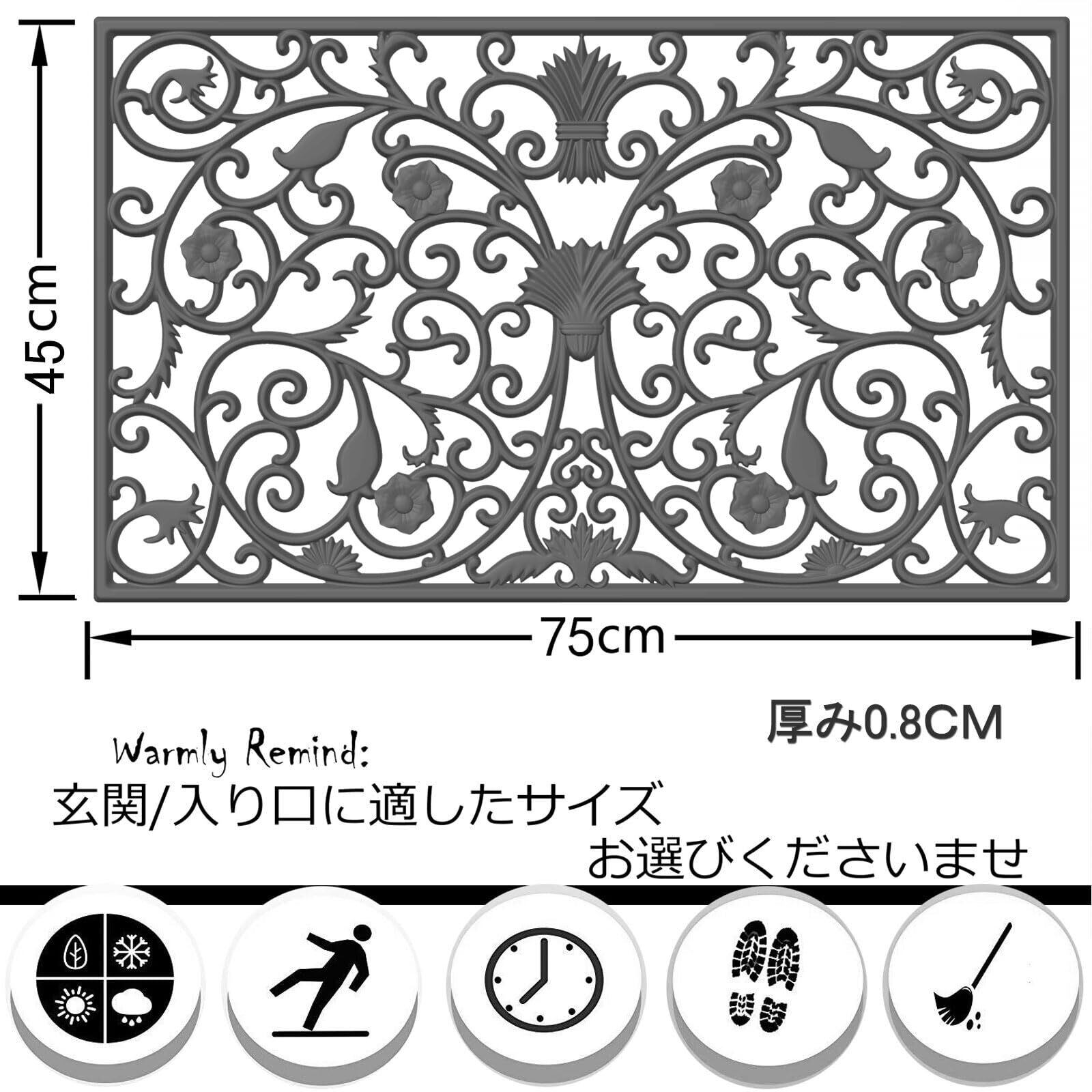 高品質なラバー素材を採用しており、靴の汚れや水をしっかりと吸収します。泥や水の侵入を防ぎ、常に清潔なスペースを保つことができ、特に泥落としが求められる場所に最適です。家族やお客様のために安心して使えるマットです!
