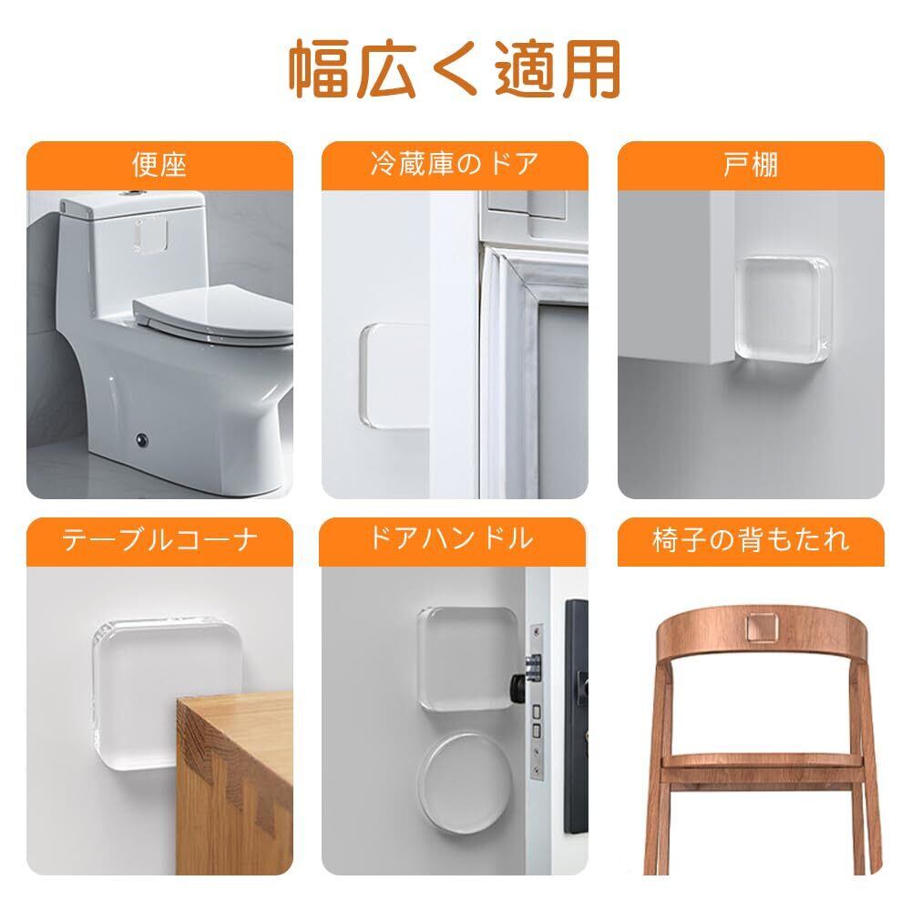 【汎用サイズ】4cm × 4cmの小型サイズで、ドアノブや家具の角など、狭いスペースにもぴったりフィット。厚さ1cmのクッション性で、衝撃をしっかり吸収します。