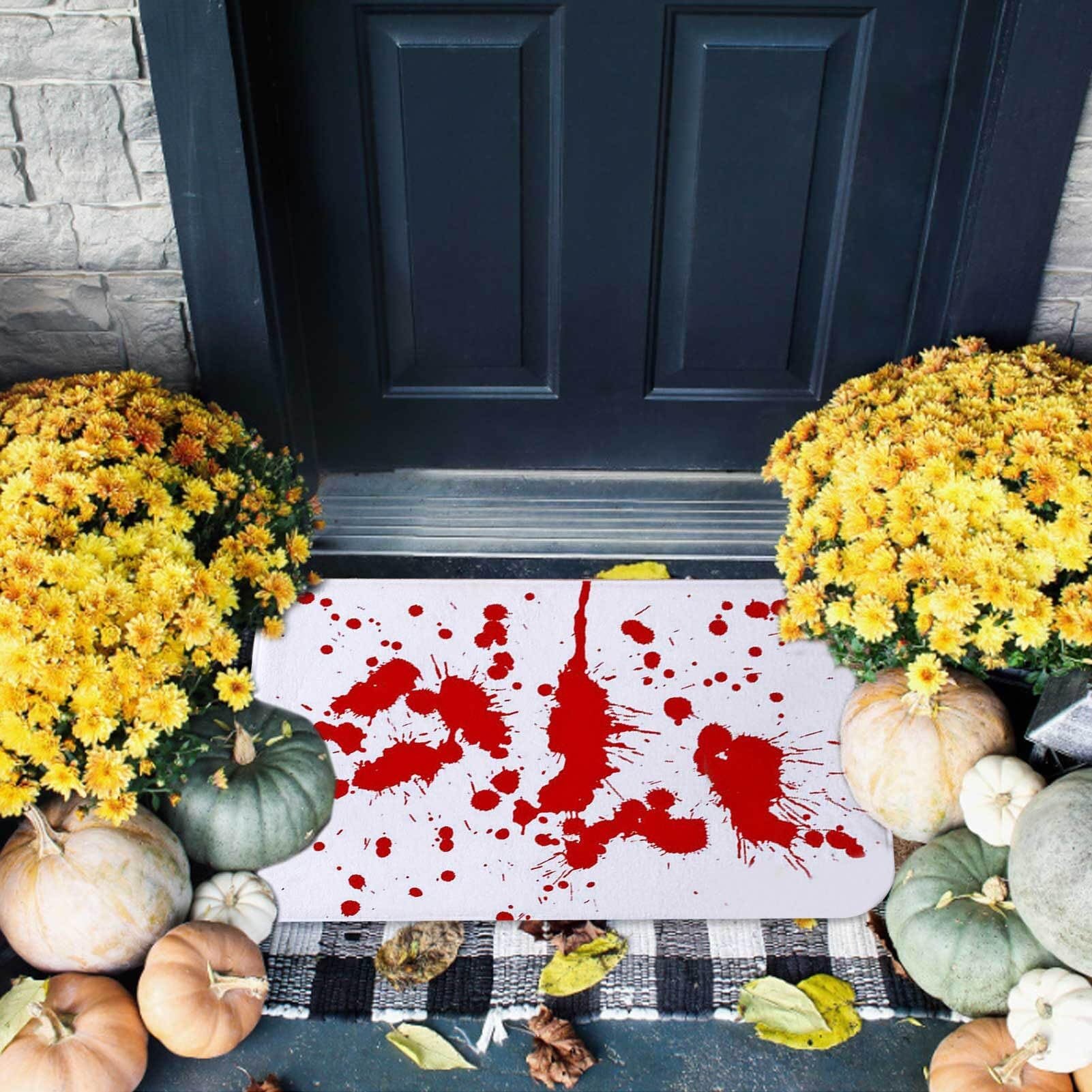 [ユニークな血まみれのテーマデザイン] ドアマットの屋外エントランスは、部屋の装飾にホラー要素を追加し、血まみれの足跡と手形のパターンでデザインされた、非常にリアルでクリエイティブに見えます。