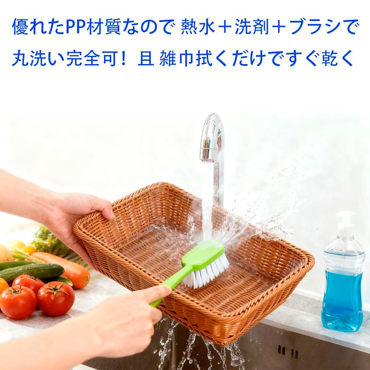 軽量で持ち運びやすく、積み重ね可能な設計で場所を取らず、収納効率を高めます。また、耐熱性があり、水洗いもできるため、お手入れも簡単。衛生面にも配慮されたこのバスケットは、毎日の使用に適した頼れるアイテムです。家事や生活を快適にサポートします!