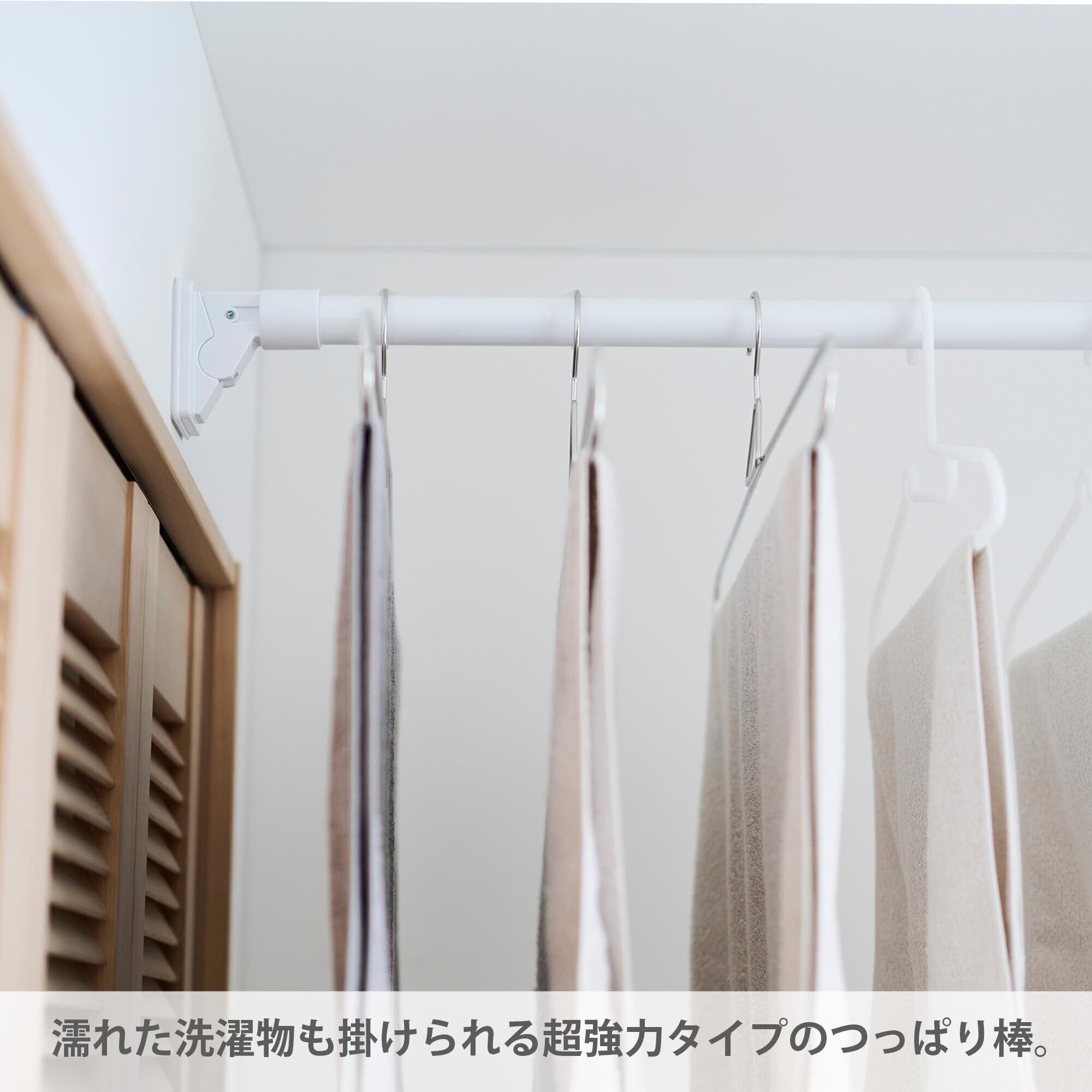 このつっぱり棒は、洗濯物の干し場所としてだけでなく、クローゼットの整理やお風呂場でのタオル掛け、さらにはカーテンロッドとしてもお使いいただけます。様々なシーンで活躍し、生活空間をスッキリ整えます。用途に応じて活用し、快適な生活を実現してください。