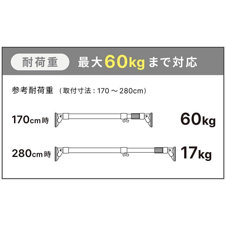 【耐荷重】170cm時 60kgまで / 280cm時 17kgまで【本体重量】1.8kg【カラー】ホワイト
