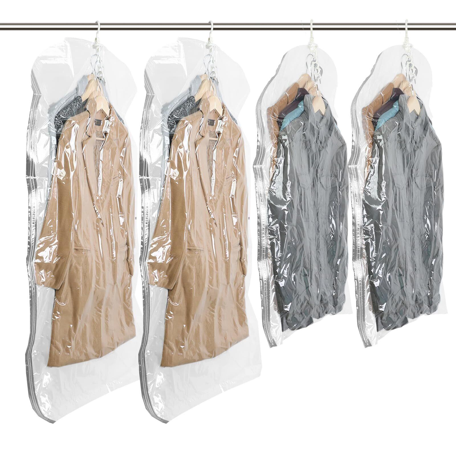 TAILI 衣類圧縮袋 吊るせる圧縮袋 洋服 吊り下げ 真空バッグ 衣類カバー 省スペース 掃除機対応 バッグハンガー 着物収納 コート ジャケット スーツ用 花火大会 取り付け簡単 繰り返し利用可能 M/Lサイズ 4枚組 透明