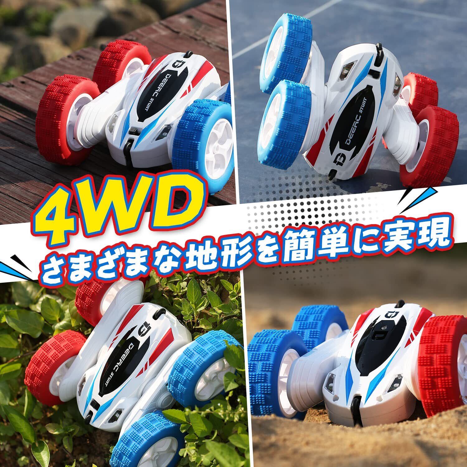 【新春セール】DEERC ラジコンカー 子供向け ラジコン オフロード スタントカー 四輪駆動 360度回転 両面走行 バッテリー2個 40分間走れ RCカー リモコンカー 室内 2.4Ghz無線操作 贈り物 誕生日 入園 こどもの日 プレゼント 子供 車おもちゃ 男の子 小学生 中学生 日本国内認証済み 日本語取扱説明書 DE35