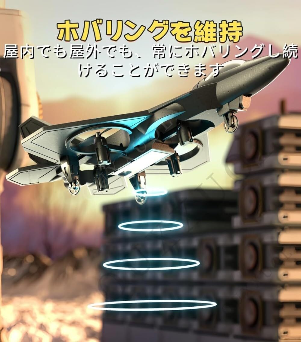 【360°ローリング機能】このリモコン飛行機は360度回転し、ローリング飛行が可能です。ダイナミックな飛行、安定したホバリング、そしてクールな空中スタントをお楽しみいただけます。